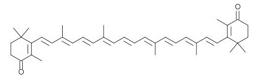 角黄素又称斑蝥黄(β-胡萝卜素-4,4-二酮),天然角黄素微量存在于某些蘑菇、甲壳类、鱼类、藻类、蛋、血液及肝脏中,部分微生物也可合成该物质。角黄素作为一种常见的着色剂,广泛用于食品和动物饲料,用于改善禽类蛋黄、皮肤及鱼肉色泽等。