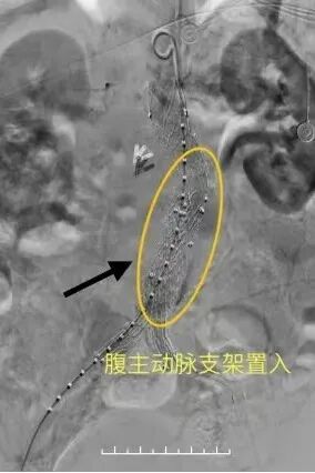 第一战,拆除“血管炸弹”。血管外科团队采用了EVAR(血管腔内修复)技术在老张的双侧大腿根部切开各一个约1厘米的小口,通过导管将覆膜支架精准置入主动脉病变部位。支架如同一层坚固的“补丁”,迅速将血液与破损的血管内壁隔绝,“炸弹”被成功拆除。全程无需开腹,出血少,血压平稳过渡。