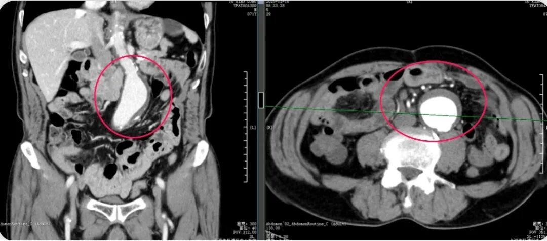 因便血入院时,老张并未意识到问题的严重性。然而,胃镜、肠镜、增强CT……一系列检查后,诊断结果如晴天霹雳:直肠中段腺癌;更令人倒吸一口凉气的是,检查竟意外发现老张的腹主动脉存在孤立性夹层,且直径已超过5厘米。