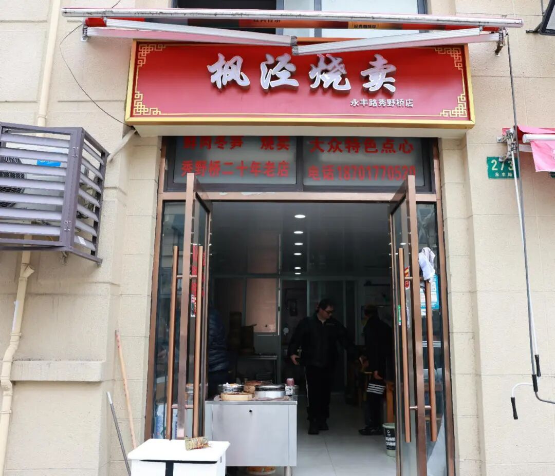 位于永丰路273号的枫泾烧麦,2002年开店,当时开在秀野桥,后来搬迁到这里。店不大,拢共四张桌子,却收拾得干净利落。店门口的电子开水炉上,蒸笼正冒着热气,烧麦的香气正一点点弥漫开来