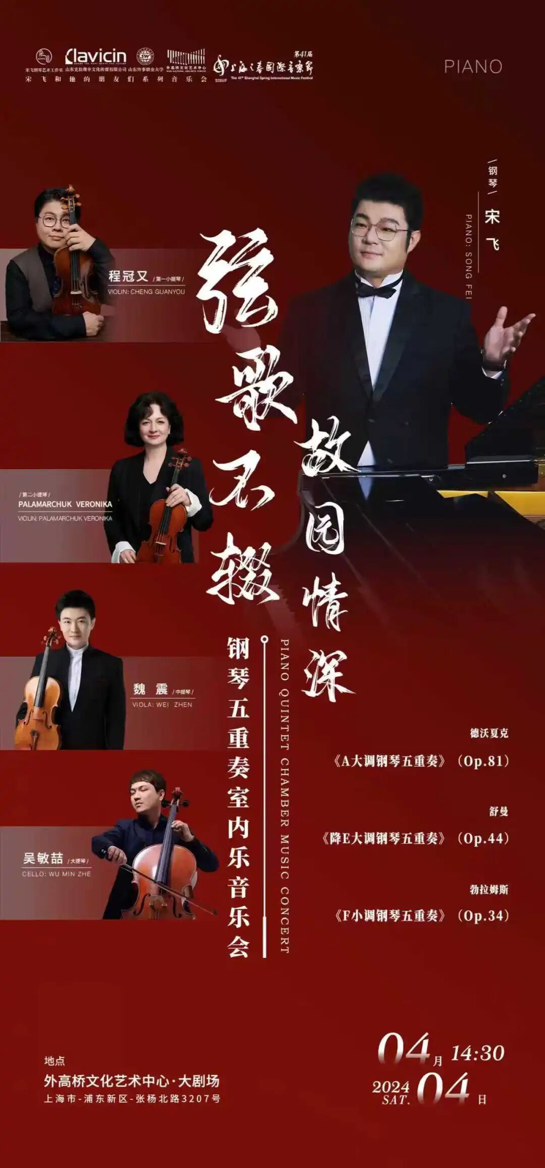 内容简介:音乐会曲目精选德沃夏克、舒曼、勃拉姆斯三首浪漫主义巅峰之作,涵盖民族风情与深沉哲思,堪称钢琴五重奏的“黄金三重奏”,尽显室内乐的交响化张力与细腻对话之美。德沃夏克《A大调钢琴五重奏》灵感源于乡村,通过民族舞蹈旋律传递东欧民间音乐特色,同时保留西欧浪漫派作曲技法,体现将民族元素融入传统音乐结构的创新尝试。舒曼的《降E大调钢琴五重奏》是一部开山之作,体现了他对音乐的热爱和才华的体现,各声部之间生气蓬勃的交互作用,为室内乐曲目立下典范。勃拉姆斯《f小调钢琴五重奏》改编自他的双钢琴奏鸣曲,这是一首凝结心血的作品,深沉浑厚,凝重忧郁,是公认的室内乐精品。音乐会由钢琴家宋飞领衔四位同窗好友,多年的学艺之路,都默契地呈现在这一场重量级的室内乐音乐会中。