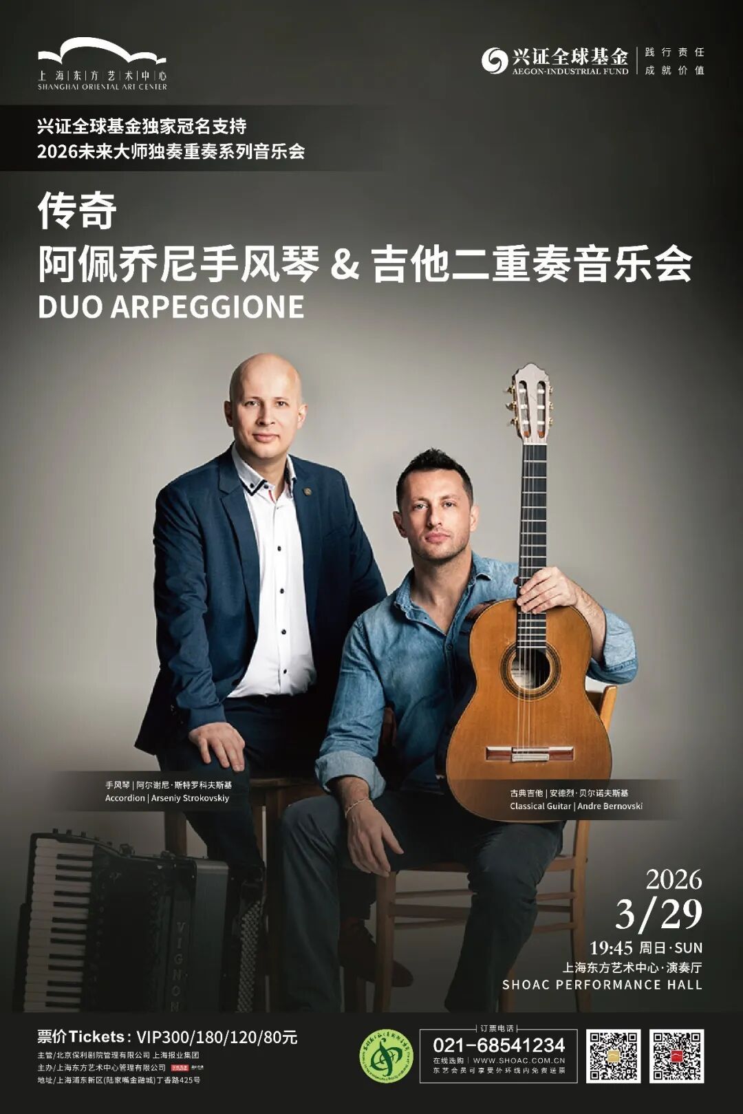 内容简介:阿佩乔尼二重奏以手风琴与古典吉他的新奇组合,奏响跨世纪音乐篇章。手风琴的深邃张力与吉他的温润质感碰撞交融,勾勒出层次丰盈的独特声景。曲目横跨数世纪,从巴洛克至当代,汇聚巴赫、维瓦尔第、舒伯特、皮亚佐拉等大师杰作,经典荟萃且风格多元。国际知名艺术家联袂献艺:手风琴大师斯特罗科夫斯基斩获多项国际大奖,演出足迹遍布全球;吉他名家贝尔诺夫斯基兼具多元文化底蕴,技艺精湛且情感表现力深厚,二人以深厚造诣演绎跨时代音乐对话,呈现精彩丰盛的听觉盛宴。