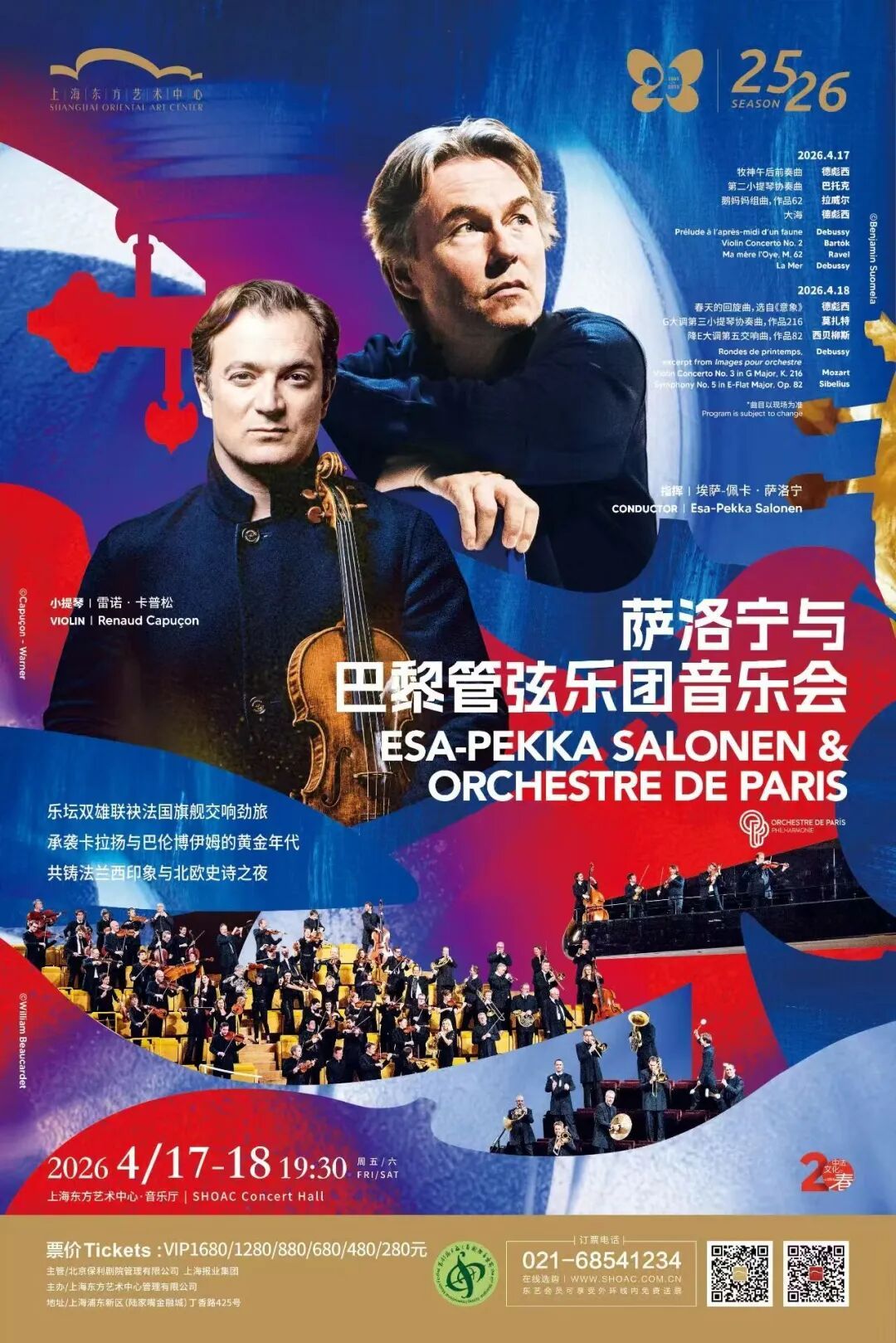 内容简介:蜚声国际的指挥大师埃萨-佩卡·萨洛宁将执棒历史悠久的巴黎管弦乐团,联袂法国小提琴家雷诺·卡普松,呈现两场不同风格的音乐会。第一场聚焦“法式印象与现代经典”,上演德彪西《牧神午后前奏曲》《大海》与拉威尔《鹅妈妈组曲》,雷诺·卡普松使用1737年名琴演绎巴托克《第二小提琴协奏曲》。第二场将呈现“古典与北欧的对话”,以莫扎特《G大调第三小提琴协奏曲》与西贝柳斯《降E大调第五交响曲》展现音乐跨度。两场演出将充分融合法式音乐的细腻精致与北欧作品的磅礴力量,为中国乐迷带来难忘的交响盛宴。
