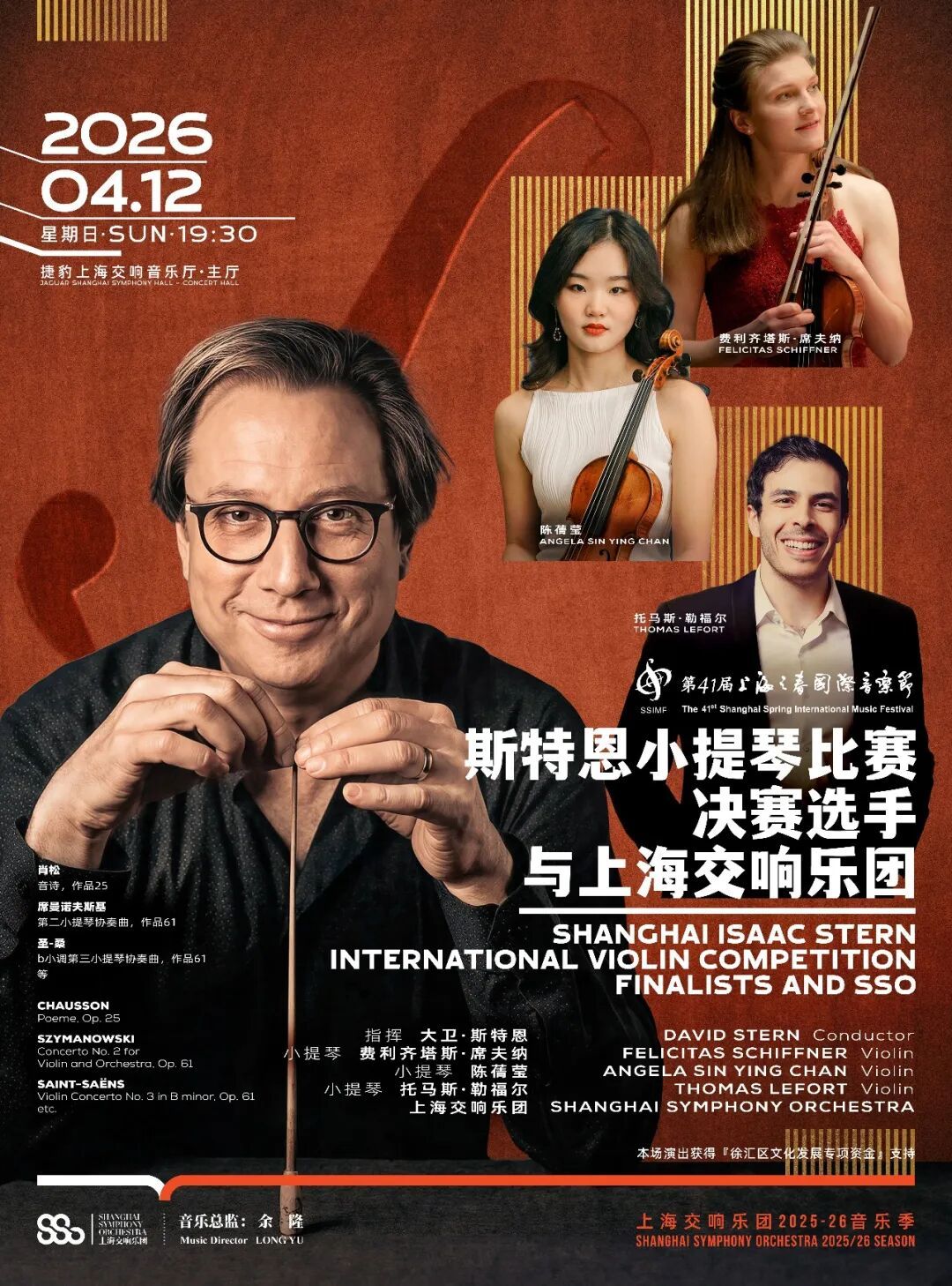 内容简介:本场音乐会上,第三届上海艾萨克·斯特恩国际小提琴比赛的三位决赛选手——德国的费利齐塔斯·希夫纳、中国香港的陈蒨莹和法国的托马斯·勒福尔将与指挥家大卫·斯特恩和上海交响乐团合作。演出曲目方面,《音诗》是作曲家肖松最受欢迎的代表作之一,这部受屠格涅夫小说《初恋》启发而创作的作品,在琴弓与琴弦间幻化成一曲关于青春幻梦、炽热爱恋与理想破灭的诗意悲歌。席曼诺夫斯基《第二小提琴协奏曲》以其独特原创的和声语言和艰深的技巧,巧妙融合了印象主义的光影与波兰民族音乐的神韵,堪称二十世纪小提琴协奏曲瑰宝。圣-桑的《第三小提琴协奏曲》展现了作曲家炉火纯青的创作技艺,在均衡呈现技巧要求的同时,更流淌着清晰而优美的动人旋律。