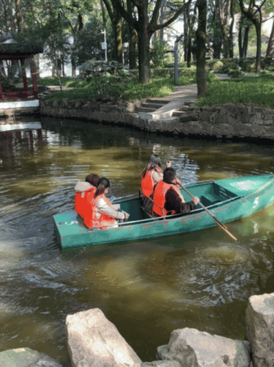 浦东新区宝藏公园!全市唯一保留传统手划船,沿途亭台楼阁倒映水中,春季贴梗海棠与碧波相映成趣,体验“移步换景”的造园智慧。