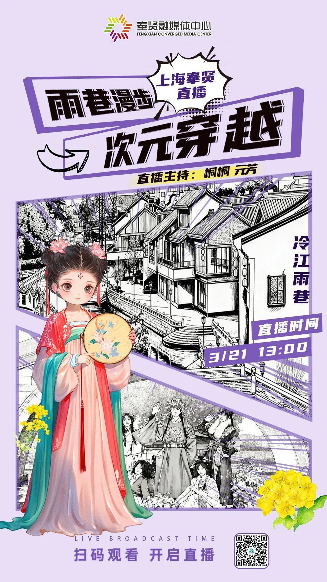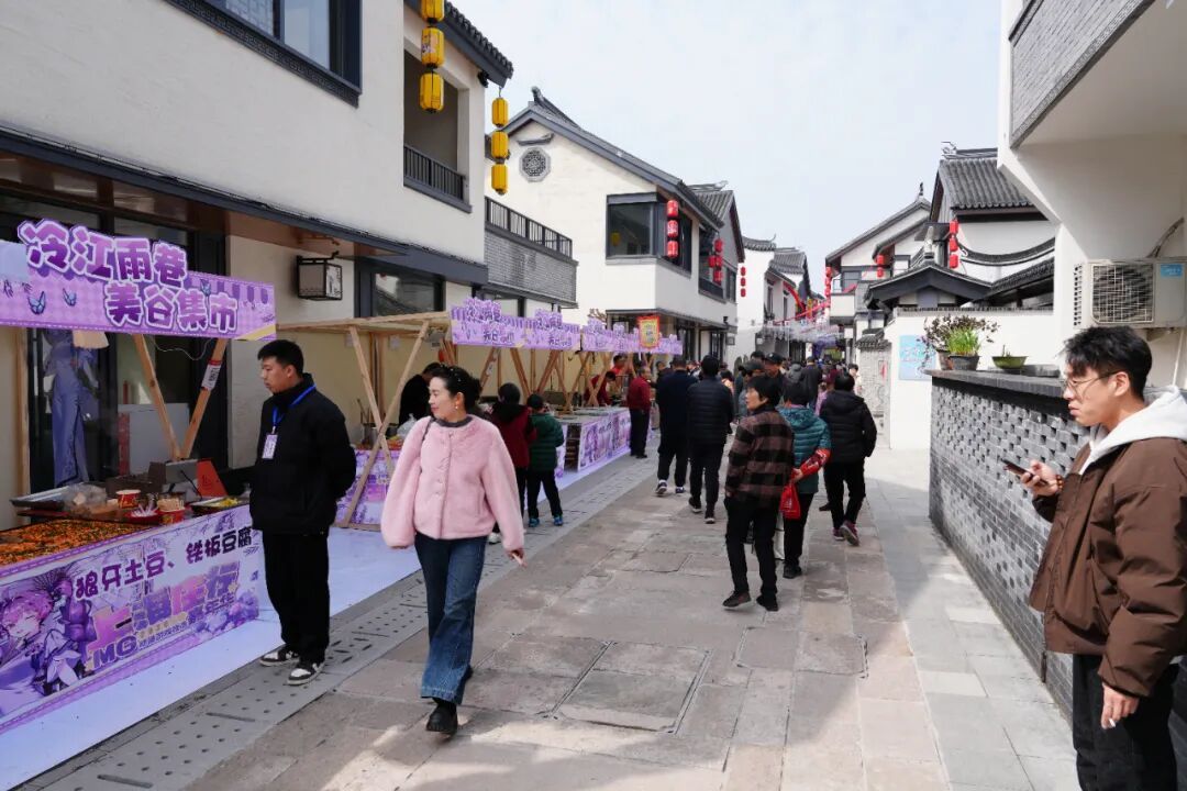 春和景明,万物生发。3月20日,正值春分节气,坐落于奉贤区庄行镇的“冷江雨巷”在春日的暖阳与锣鼓声中迎来了盛大的开街仪式。这座拥有六百余年历史的江南古镇,没有选择在“修旧如旧”中归于沉寂,而是大胆拥抱“二次元”潮流,以“雨巷有诗,新潮入画”为主题,开启了一场传统与未来的深度对话,正式向公众展露其焕然一新的面貌。