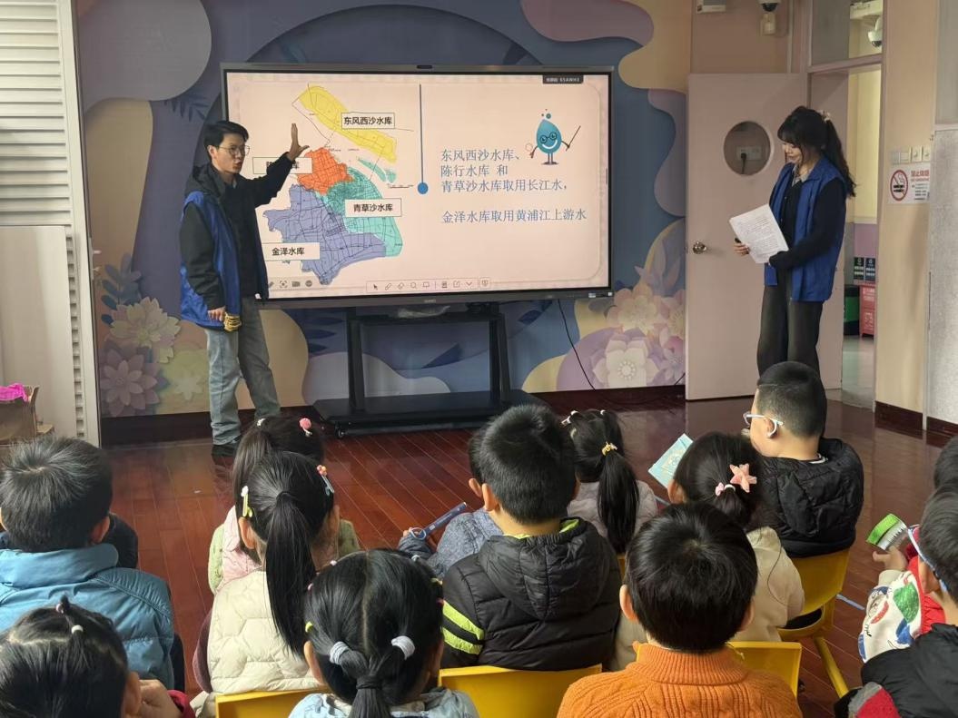 3月16日,水文总站团支部赴宝山区永清路小学开展“3·5”学雷锋志愿服务暨世界水日宣讲活动。志愿者们围绕“珍惜小水滴 城市更美丽”这一主题,面向120余名小学生开展节水知识科普宣讲。志愿者们充分发挥水文专业优势,采用“理论授课+沉浸互动”教学模式,通过制作精良的多媒体课件,结合生动鲜活的现实案例,设置丰富多彩的水知识谜语,系统讲授了水资源的理化特性、上海四大水源地的分布格局,并深入解读了节水的重要意义。课堂上,志愿者们精准剖析常见用水误区,与孩子们展开热烈讨论,共同探索实用的家庭节水妙招,让节水理念悄然扎根于童心。