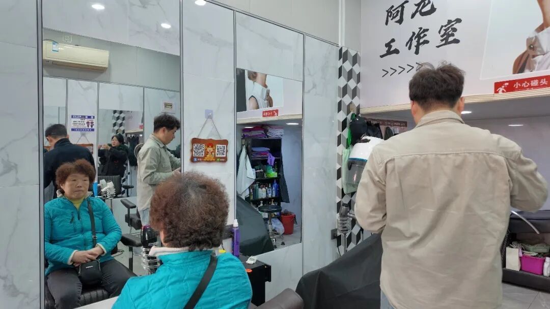 为居民提供免费义剪的阿龙师傅,是承兴里居民的老熟人、老朋友了。逢年过节为邻里义务理发,早已成为他雷打不动的习惯。尤其是二月二龙抬头这个特殊的日子,他总会主动配合居委会,为居民们精心打理发型,让大家焕然一新。即便如今已经由于房屋征收搬离承兴居委会,新店开在了黄河路定兴路附近,阿龙师傅依旧割舍不下这份浓浓的邻里情,坚持把这份公益传统延续了下来,这一守,就是五、六个年头。