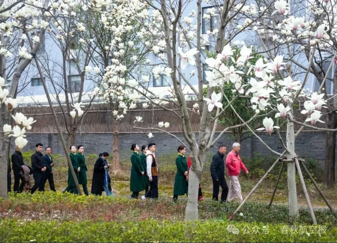 3月16日下午,在春秋航空董事长王正华先生、客舱服务部总经理韩永春先生的带领下,春秋航空红河籍乘务员们走进这座位于空港一路21号的百年历史建筑,青砖拱廊下,阳光透过盛开的白玉兰洒落,开启了一场穿越时空的对话。