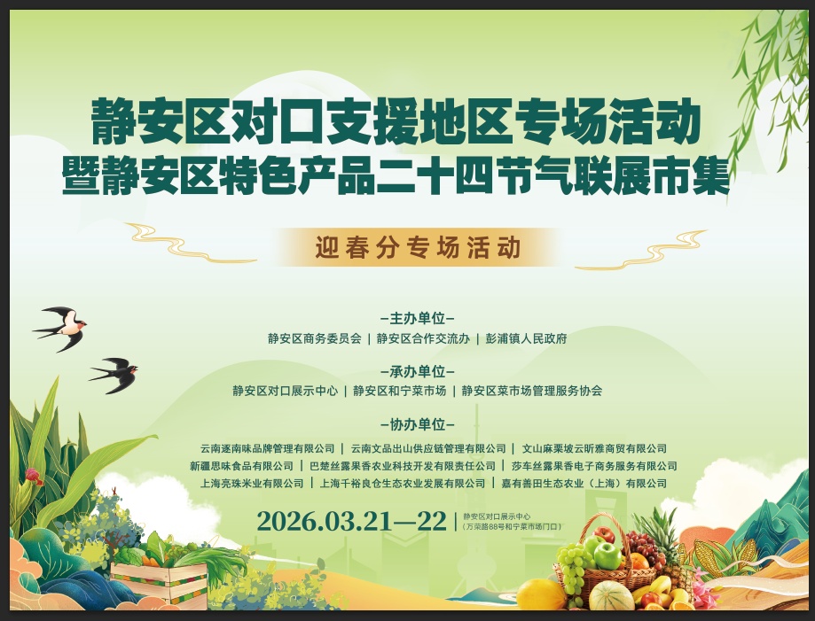 为深入推进对口支援工作,让新疆喀什、云南文山、湖北夷陵等对口地区的优质农副产品走进静安百姓生活,同时为市民送上平价、优质的本地时令好物与贴心便民服务,由静安区商务委员会、静安区合作交流办、彭浦镇人民政府联合主办,静安区对口展示中心等单位承办的静安区对口支援地区专场活动暨静安区特色产品二十四节气联展,于春分后正式拉开全年帷幕!