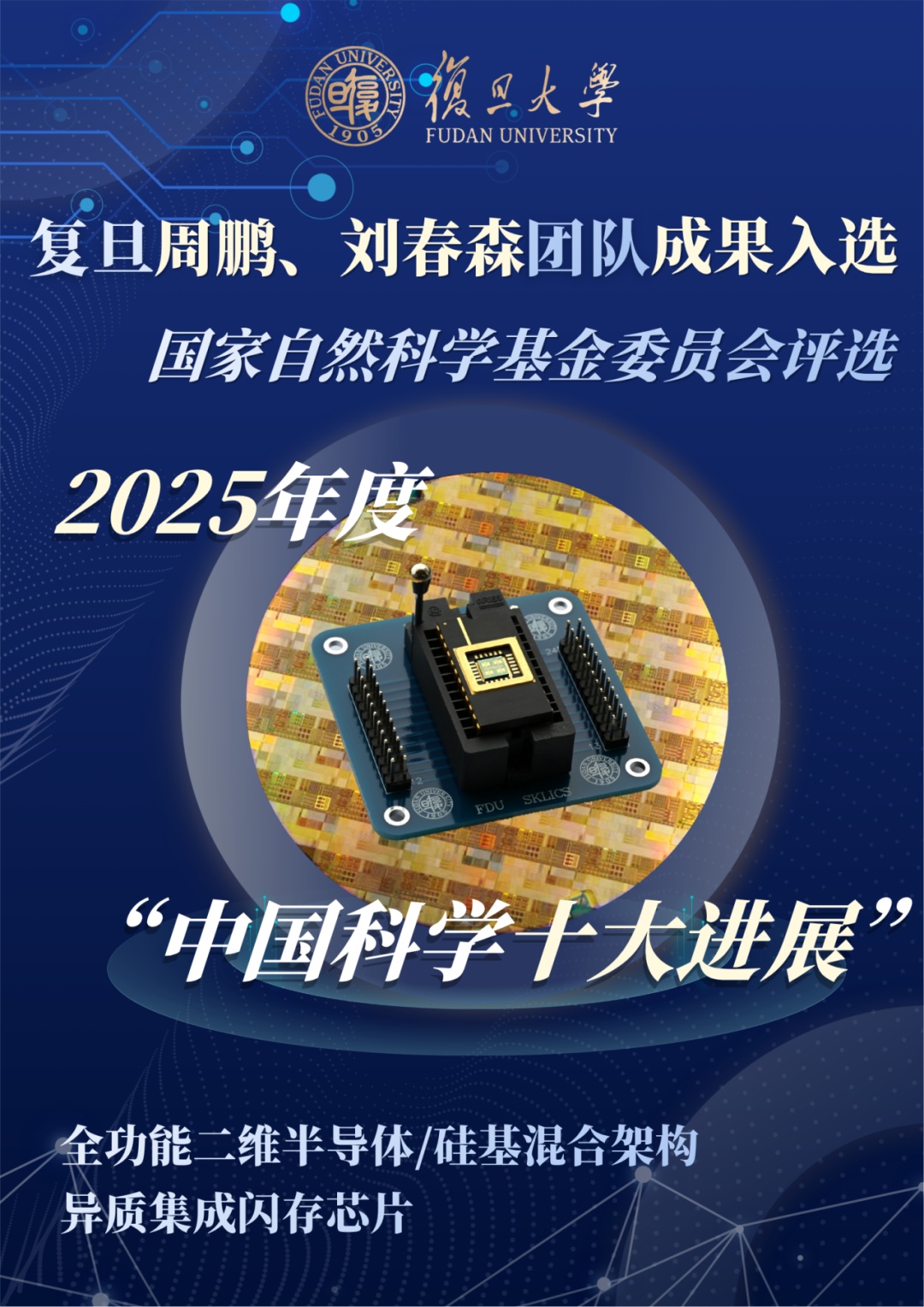 为推动颠覆性创新走向工程化应用,复旦大学周鹏、刘春森团队主动融入产业链,将二维超快闪存与成熟硅基CMOS平台深度融合,率先实现全球首颗二维-硅基混合架构芯片,攻克了新型二维信息器件工程化的关键难题。
