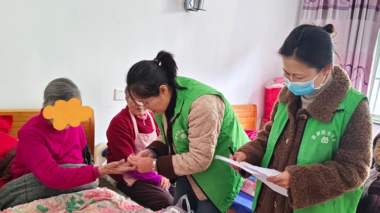 “阿婆,最近血压控制得不错,但降压药还是要按时吃,不能断。”3月初,在91岁高龄的张阿婆家中,佘山镇社区卫生服务中心的家庭医生尹茸已一边为老人测量血压,一边耐心地叮嘱用药注意事项。这是中心近期开展的“叩门守护”专项行动的一个日常缩影。