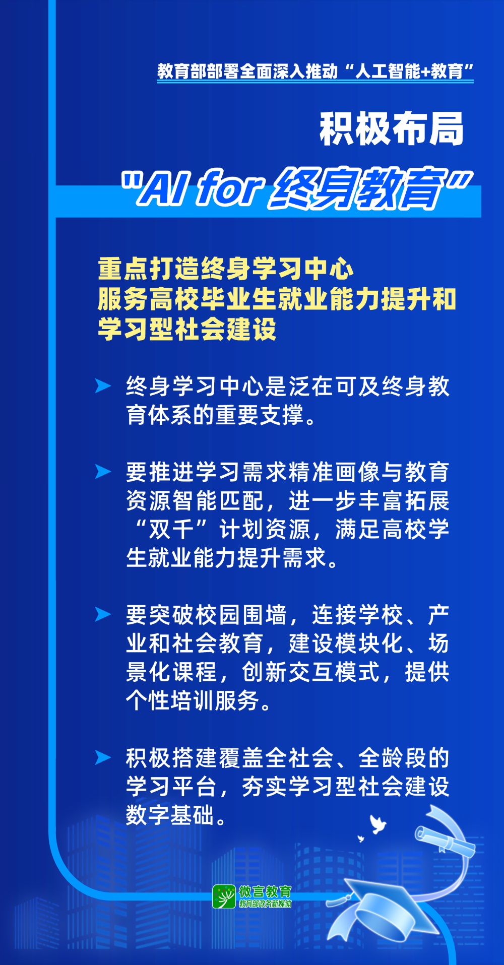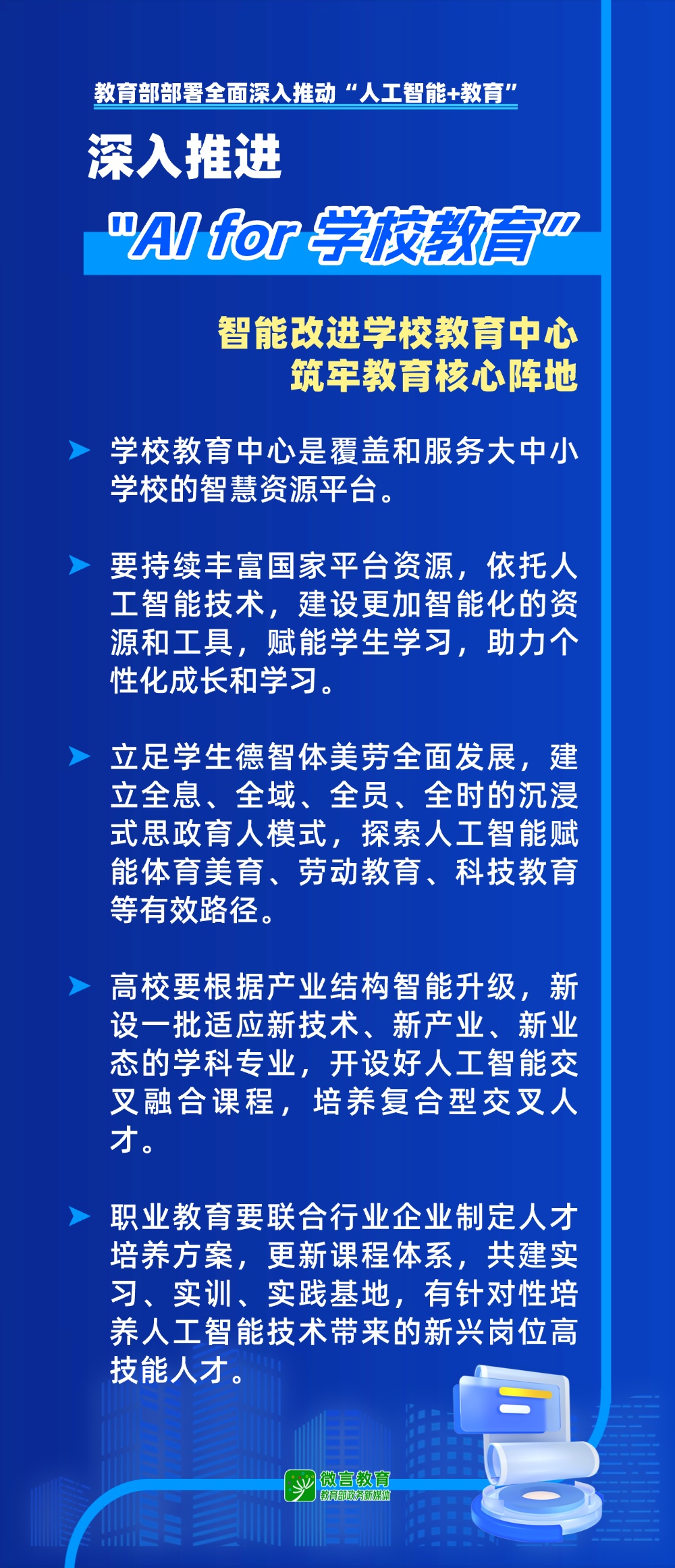 日前,教育部召开国家教育数字化战略行动2026年部署会。面向“十五五”时期,教育部部署全面深入推动“人工智能+教育”,有哪些重点工作?和小育一起来看——