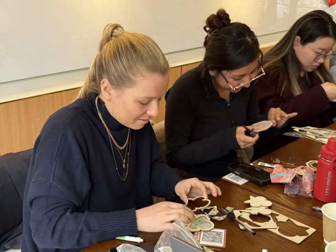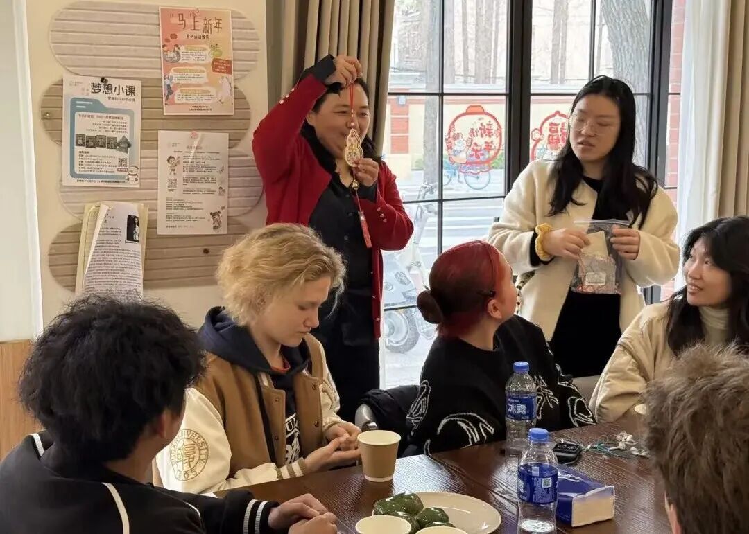 结束了脑力激荡的深度交流后,活动迎来了充满烟火气与文化韵味的非遗手工体验环节。留学生们围坐一堂,在工作人员的指导下动手制作国风挂件,穿绳、缀珠、勾勒纹样,指尖流转间,中华传统手工艺的精巧与雅致尽数展现。相较于理论讲解,这种沉浸式的动手体验,让文化交流变得更具象、更生动,也让异国学子在亲手创作中,真切感受到中华优秀传统文化的独特魅力。