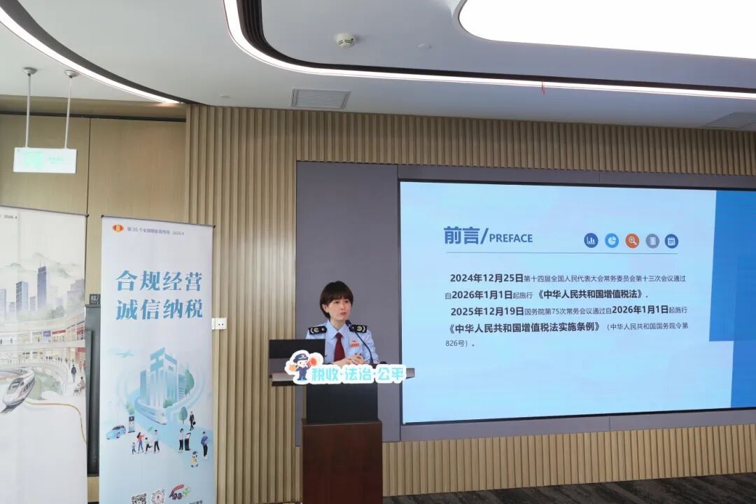 宣讲会上,区税务局围绕新《增值税法》实施要点开展专题政策宣讲,聚焦新法修订的核心条款、征管流程优化、优惠政策适用等企业关心关注的重点内容,通过案例解读、条文拆解、现场答疑等形式,用通俗易懂的语言讲解政策细节,破解企业在增值税申报、抵扣、合规核算等方面的困惑。