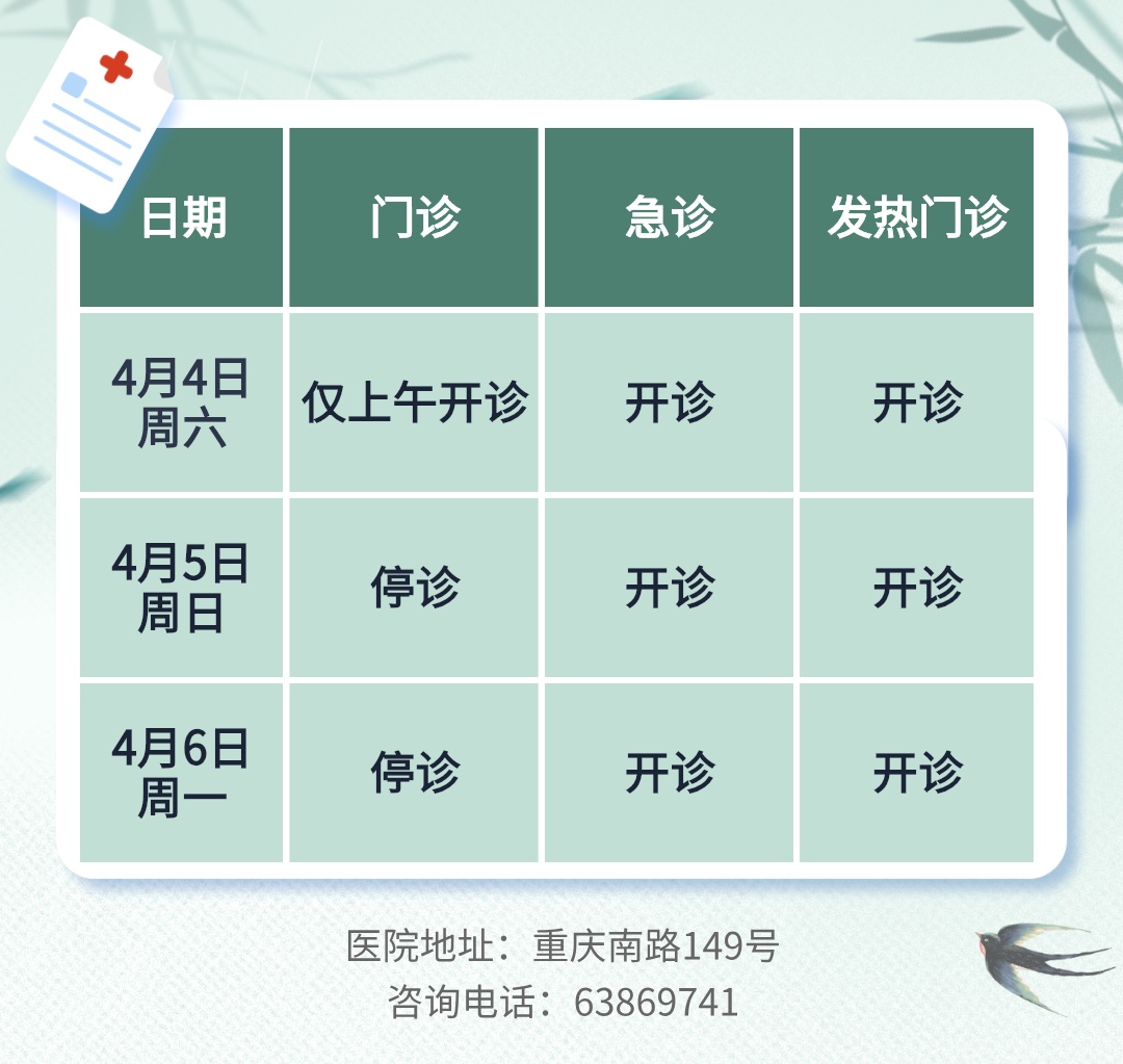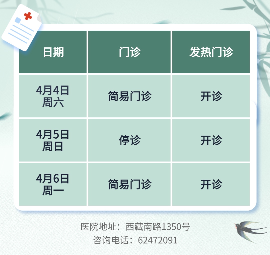 有备无患!黄浦区属医疗机构清明假期门急诊安排来了
