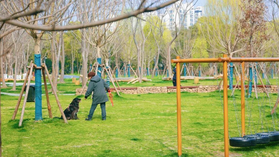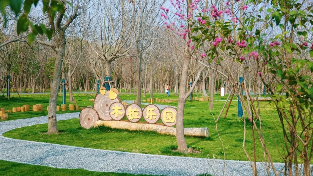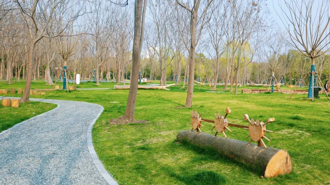 公园内还特别设置了木桩乐园,秉承“儿童友好”的设计原则,打造了一个兼具科普、环保与趣味的自然主题游乐空间。孩子们可以在木桩间穿梭、攀爬、探索,在游戏中认识自然。