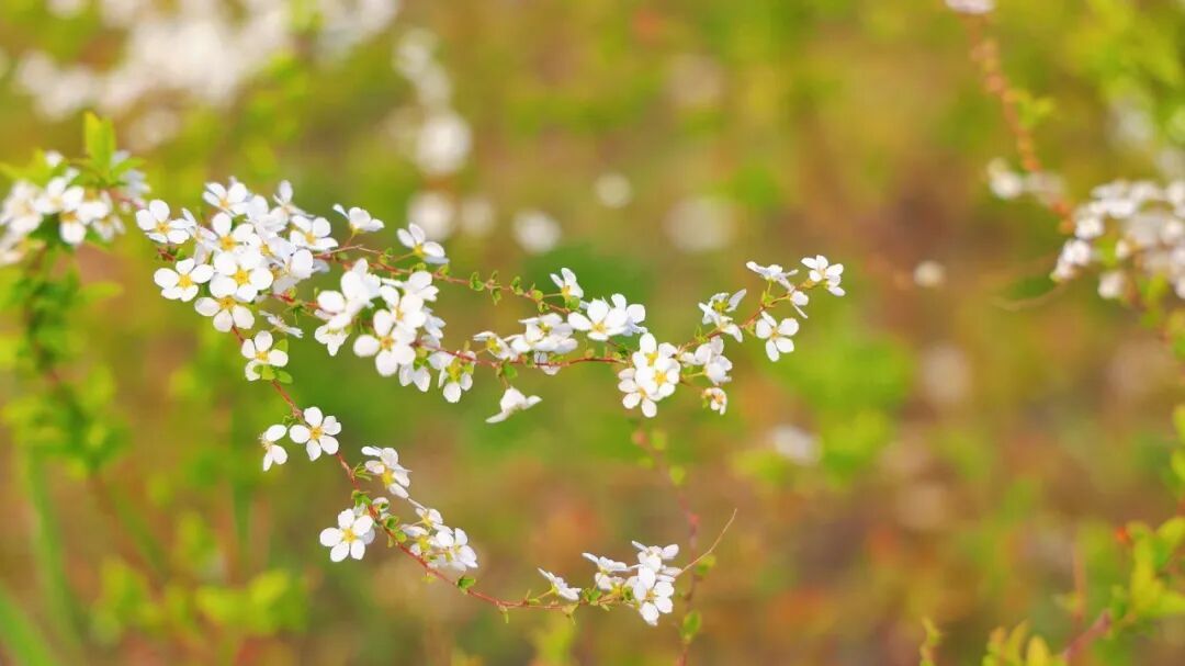 沿着步道走到河边,岸边的雪柳开满了细碎的白色小花,满枝的花朵如云似雪,风一吹,花瓣便簌簌轻扬,落在水面上,漾开一圈圈涟漪。