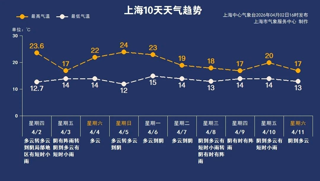 雨水过后,好天气留给假期。清明节期间(4~6日),上海以多云天气为主,总体保持在12~24℃之间,体感温暖舒适,出游踏青和祭扫两相宜。假日期间火险等级较高,请大家注意用火用电安全。
