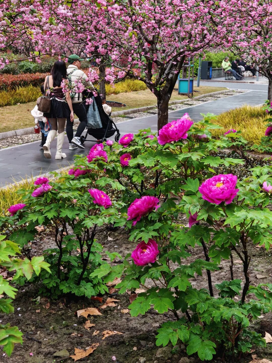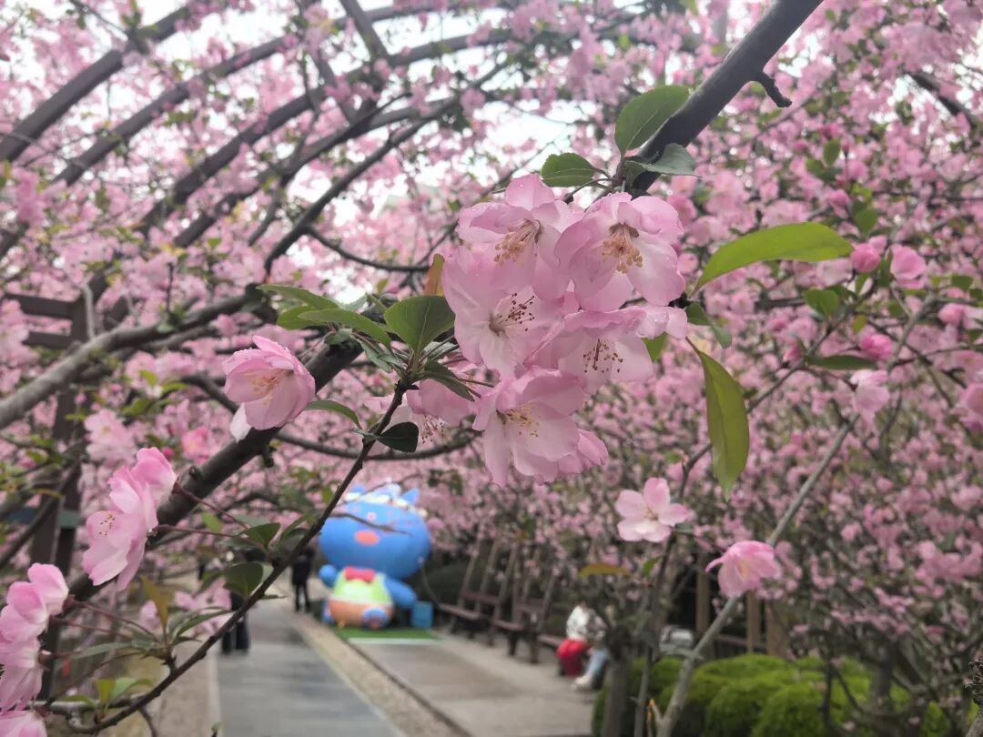 粉白与深红交织,温柔与华贵碰撞,漫步花下,春风拂面,花香萦绕,春日的美好在此刻加倍。