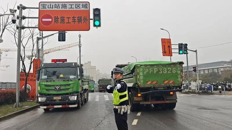 自3月起,高铁宝山站的建设正式转入基坑土方开挖及大规模出土阶段,大型工程车辆土方外运进入高峰期。为保障施工期间工地周边道路安全畅通,上海市公安局宝山分局交管支队立足源头防控、流程优化、安全保障三大维度,精细化推进管控工作,全力为国家重点项目建设保驾护航。