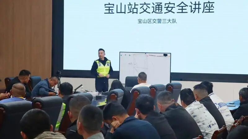 近日,交管支队组织项目部百名运输车辆驾驶员开展安全教育。此次宣教摒弃传统单向灌输模式,民警以大型车辆事故案例视频为教材,现场设问引导,鼓励驾驶员主动分享。司机老刘率先发言:“右转不仅要必停,还要起身观察,确认安全后再通过。”在他的带动下,在场驾驶员纷纷交流起有用的防御性驾驶技巧。 在强化宣教引导的基础上,支队积极为源头管控注入科技动能。高铁宝山站工程开工以来,支队依托自主研发的运输车辆大数据监管平台,通过分析车辆行车数据,精准研判驾驶员超速、右转不停、疲劳驾驶等违法行为。截至目前,通过平台已回溯处罚项目工地运输车辆驾驶员百余名、运输企业6家,并同步开展入企督导,督促企业严格落实主体责任。针对夜间施工车辆排队进场存在发生追尾事故的隐患,平台新增夜间预警功能,从时间范围、停放时长、道路条件和车辆数量等多维度设置预警标准,将预警信息实时推送至属地大队,民警及时引导车辆至照明良好、机非隔离完善的区域临时停放,提前排除隐患。