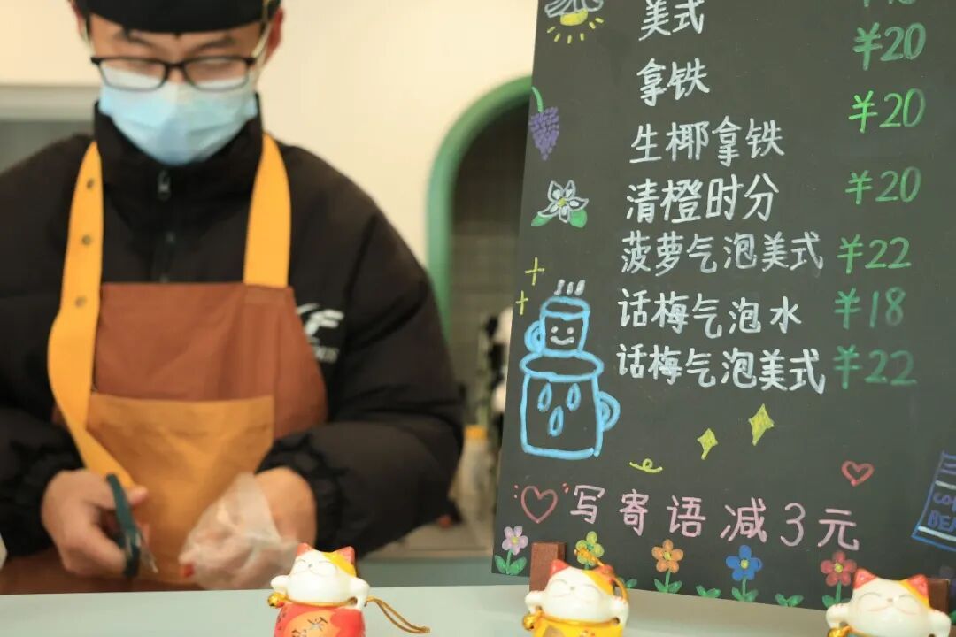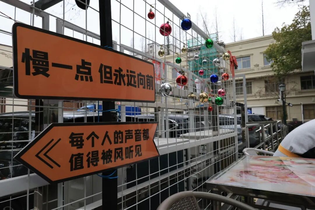 “慢一点,没关系”“每个人的声音都值得听见”“我们在一起,就很了不起”……幸福市集中,随处可见这样的暖心标语。相较于喧闹的市区,这里多了一份宁静与温柔。午间休息时,只要天气晴好,孩子们就会坐在店门口的椅子上晒太阳,和店里的工作人员谈天说地——聊新开的奶茶店、吐槽下雨天的拥堵、分享好看的电影,话题和普通人别无二致。