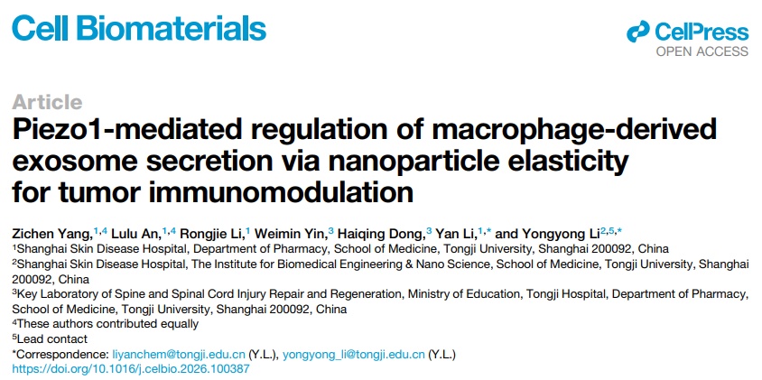 外泌体的生物调控机制对其生物合成、分泌及货物分选过程具有关键调控作用,在细胞间通讯、疾病发病机制及精准医学领域发挥核心作用。近日,医学院李永勇/李艳团队研究成果发表于《细胞·生物材料》(Cell Biomaterials)。该研究系统揭示了纳米颗粒弹性对巨噬细胞外泌体分泌及其免疫功能的调控机制,构建了具有可调杨氏模量的纳米颗粒作为单变量力学系统,建立了“纳米力学外泌体工程化”研究范式,为力学调控外泌体免疫生物学提供了基础性见解,并为精准外泌体治疗提供了蓝图。