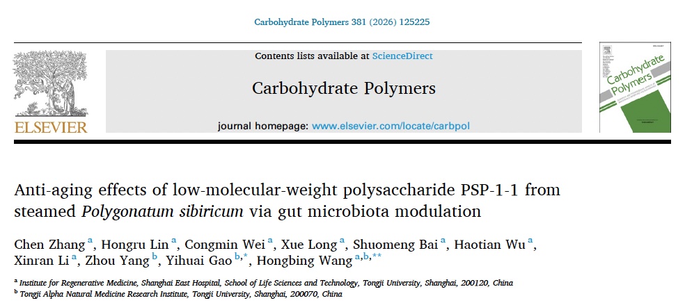 黄精在我国药用历史悠久,被誉为“长寿草”,在抗衰老方面具有重要价值。近日,生命科学与技术学院王红兵课题组研究成果发表于《碳水化合物聚合物》(Carbohydrate Polymers)。该研究系统揭示了经“九蒸九晒”炮制后的黄精来源低分子量多糖PSP-1-1在结构特征、抗衰老活性及肠道菌群调节方面的多重功能,系统阐明了PSP-1-1作为制黄精关键活性成分的作用基础,揭示了其通过缓解氧化应激、减轻神经毒性及调节人源肠道菌群组成与代谢协同发挥抗衰老效应的潜在机制。