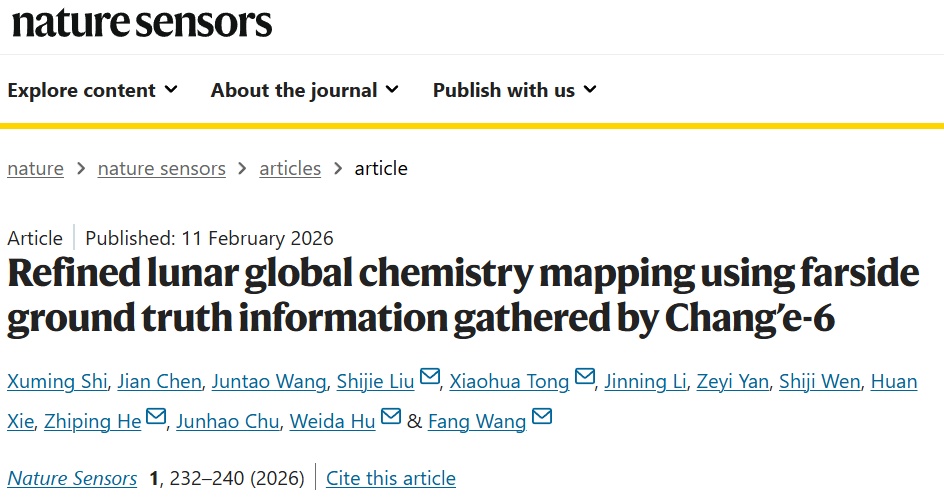 月球表面主要化学元素分布特征是揭示月球起源、岩浆演化和撞击历史的核心钥匙。近日,同济大学上海自主智能无人系统科学中心和测绘与地理信息学院童小华院士、刘世杰教授团队联合多所高校与科研机构的研究成果发表于《自然·传感》(Nature Sensors),并被选为该刊创刊第三期封面文章(Cover Image)。研究团队深度融合人工智能与行星测绘遥感等多学科优势,研制了新一代全月六类主要氧化物含量和镁指数分布图,为深入解析月球特别是月球背面的地质演化历史、指导月球资源勘探和任务规划提供了新的科学依据。