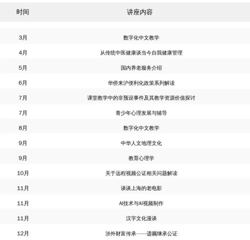 另一方面围绕教育教学交流,设置数字化教学、青少年心理发展、教育心理学等主题,助力海外华文教师提升教学能力、破解教学难题;同时增设AI技术应用、来沪便利政策等实用知识,贴合海外侨胞与华文教育从业者的日常需求。