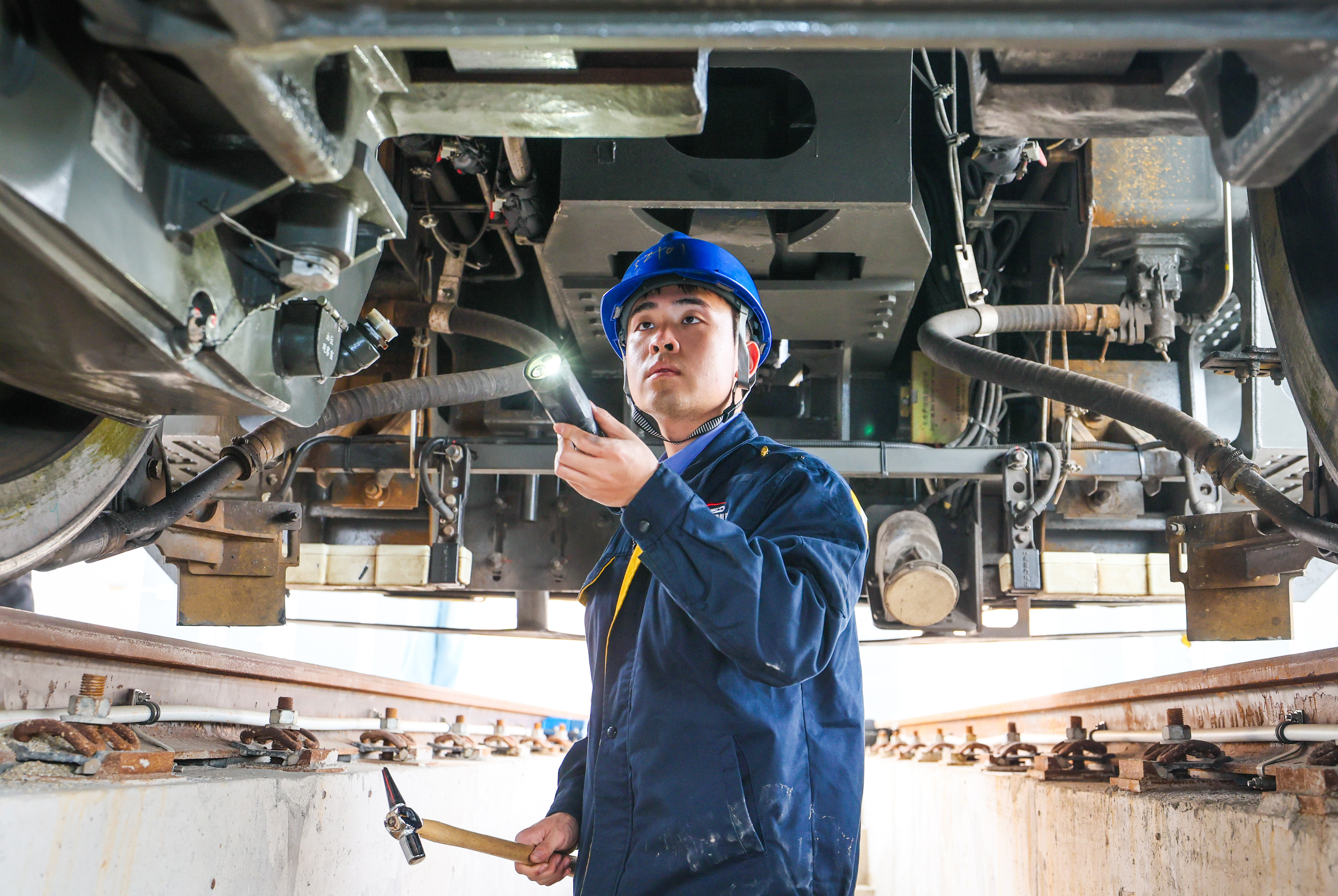 检查机车车底各部件状况。