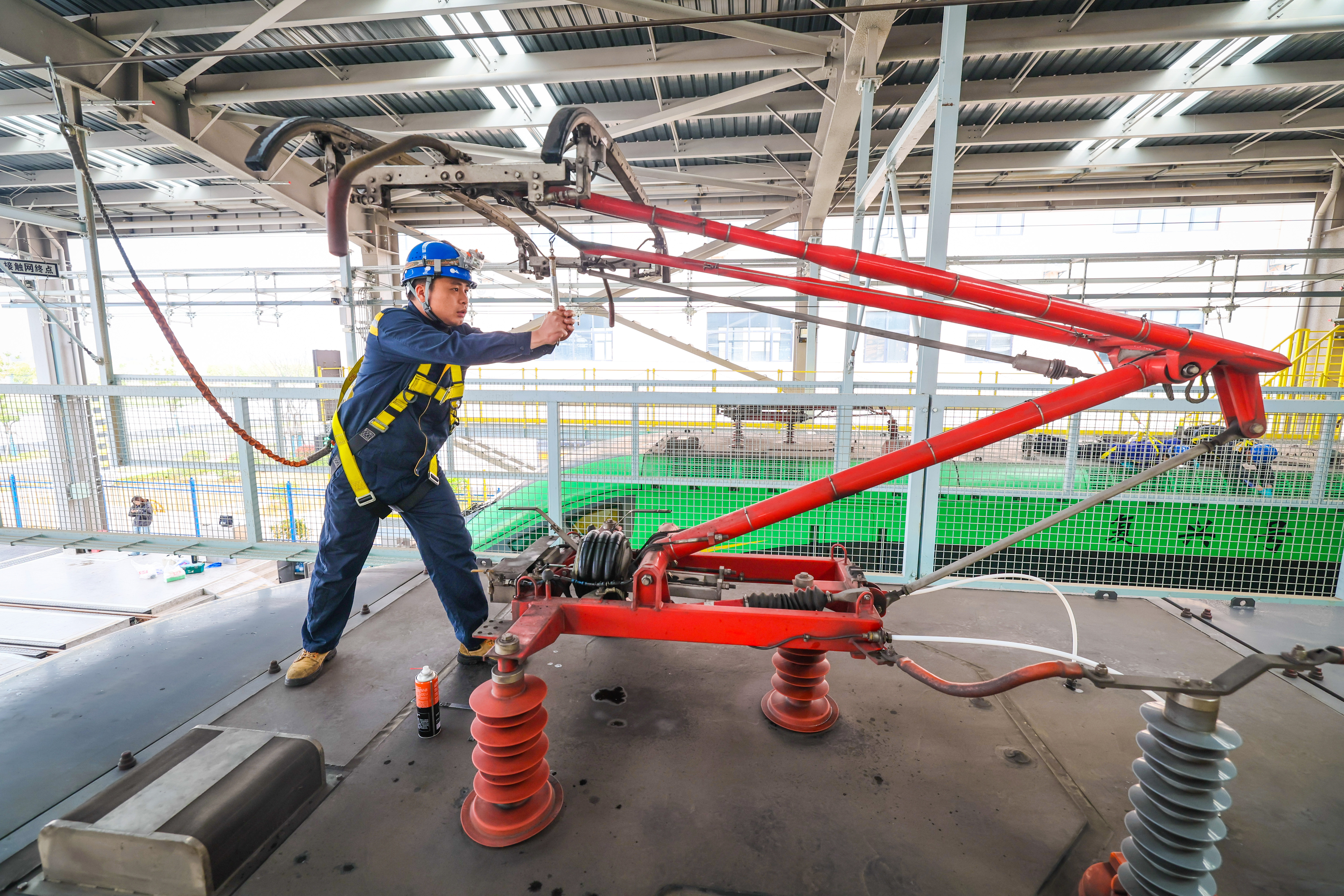 检修动车组受电弓。