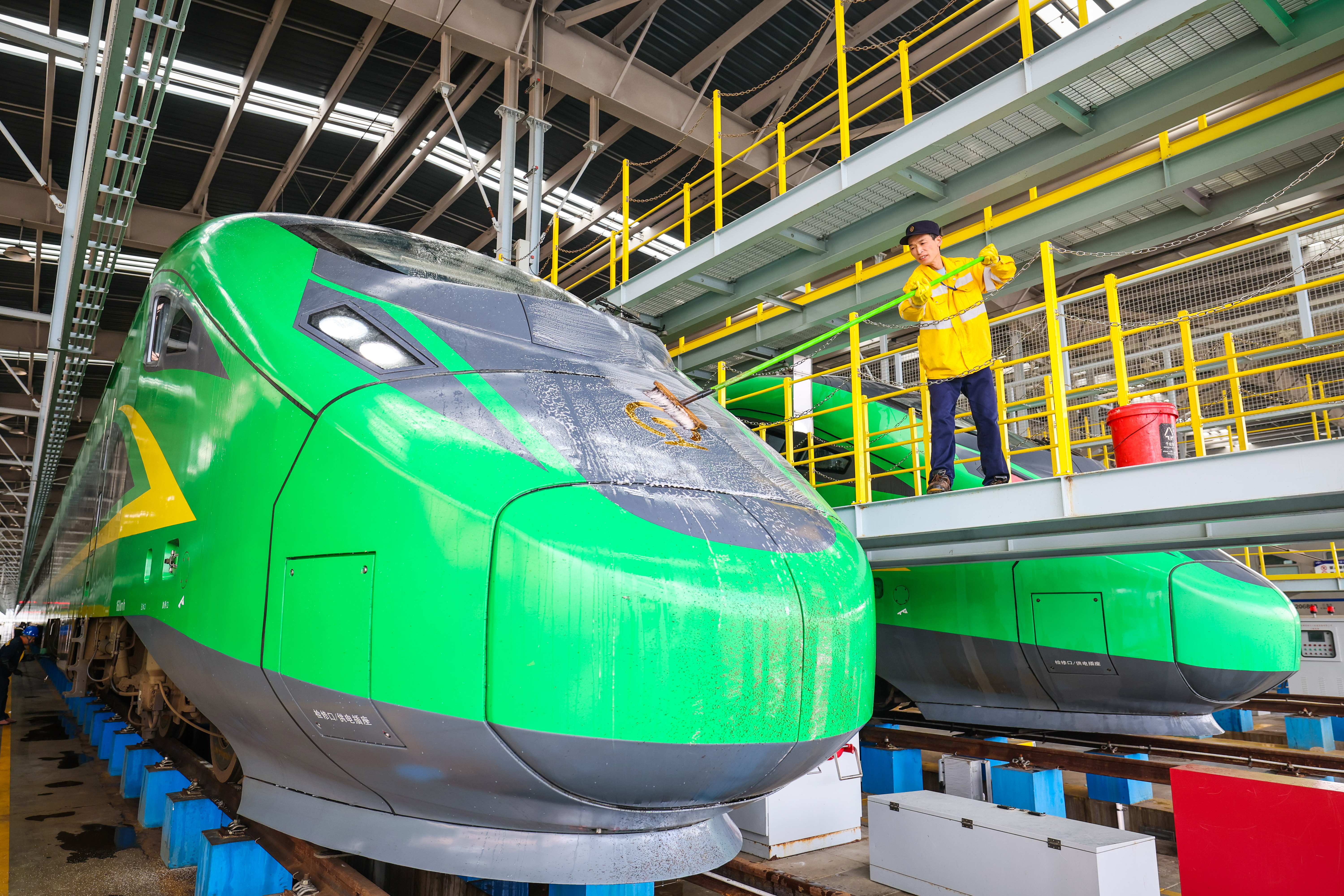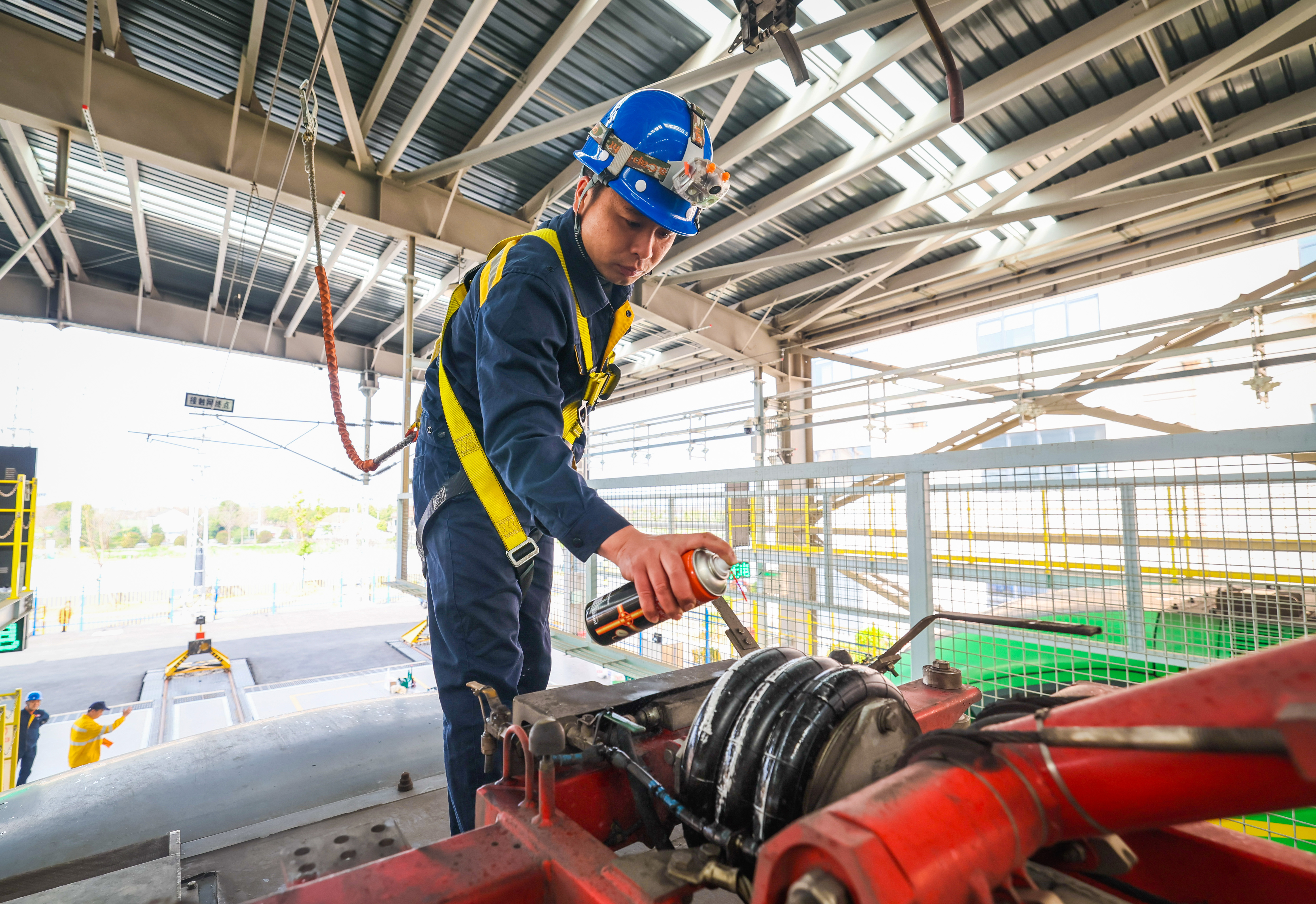 4月1日,上海机辆段松江库区开展春季机客车整修作业。检修人员对配属机客车进行全面的检查、维修与整治鉴定,重点完成空调、制动以及直供电装置检修调试,细致排查各类隐患,提升机客车运用质量,为春游、小长假及暑运等重点运输任务筑牢安全基础,保障旅客出行舒适顺畅。 记者 蔡斌 摄 实习生 杨诺怡