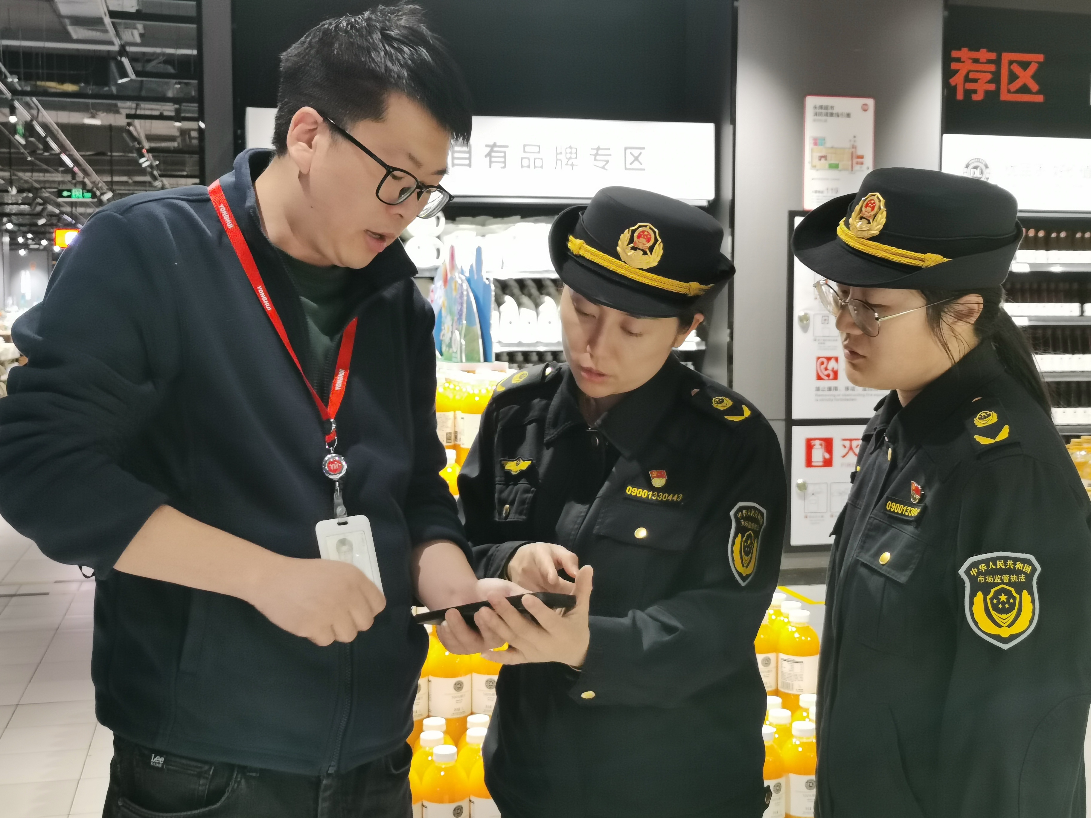 检查伊始,区市场监管局中山所执法人员严格遵循执法规范,主动出示“检查码”与执法证件,向超市负责人明确检查依据与流程,随后认真核查超市食品经营许可证、从业人员健康证明等证照,确保经营主体资质合规。