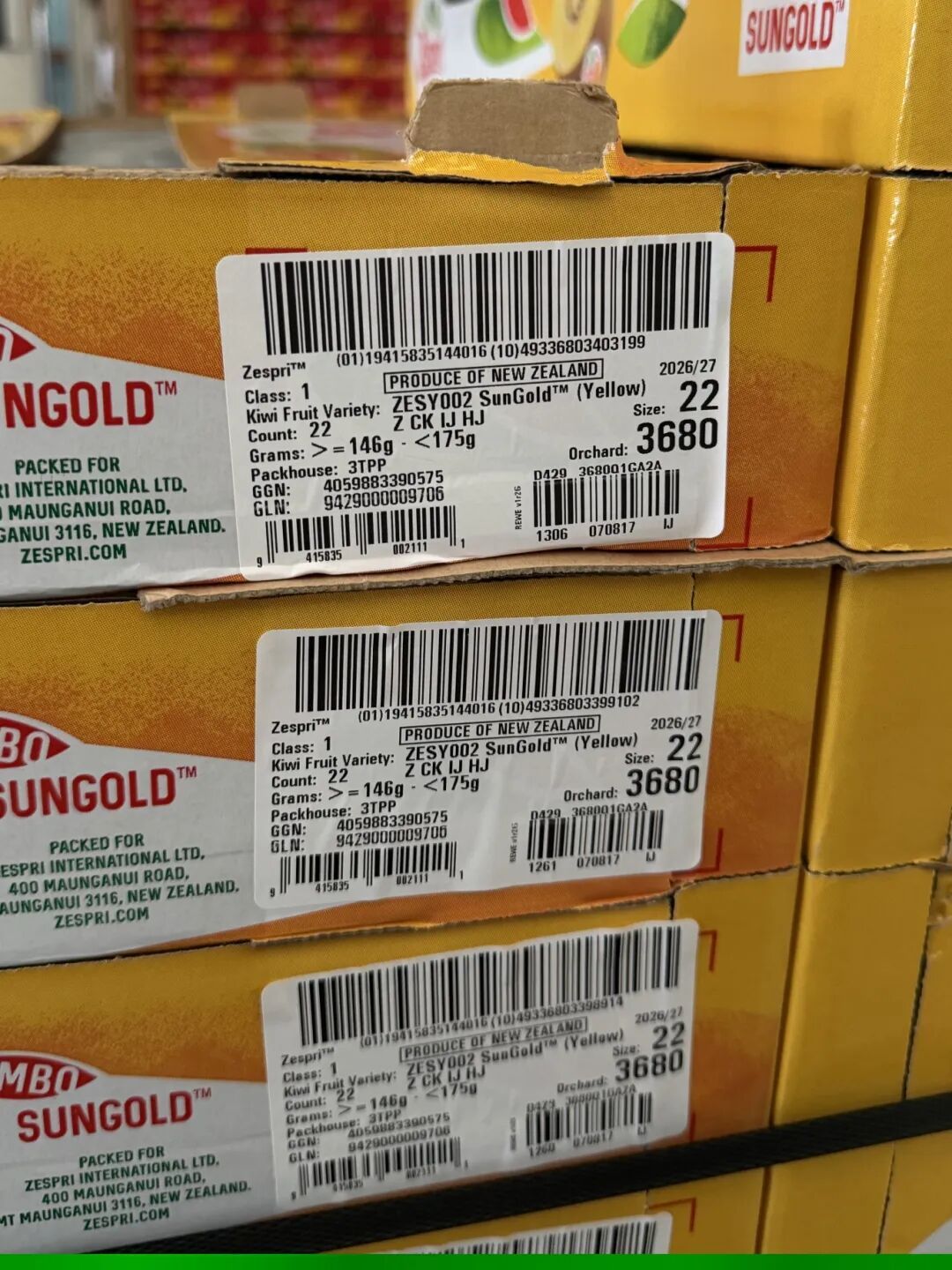 据商家介绍,本批到货的品种为佳沛阳光金果,总量约3000余箱,得益于船运直航带来的成本优化,今年批发价较去年同期略有下降,单箱价格在180元至210元之间,较去年旺季每箱便宜约20至30元。