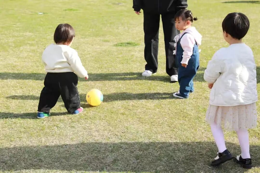 孩子们追逐着跳跃的皮球