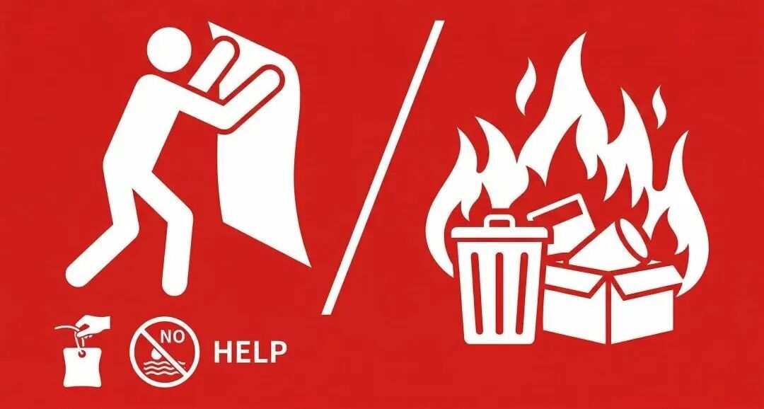 使用过程中,最好佩戴手套,双手握住两根黑色拉带将灭火毯轻轻抖开,再从靠近身体一侧向外铺开,让灭火毯将人的身体与火焰进行隔离,避免引火烧身。同时,确保灭火毯能够完全覆盖火源,并持续覆盖一段时间。