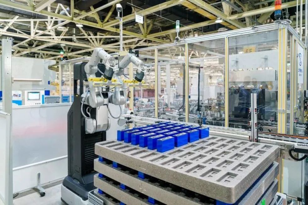 此次落地是智元与上汽通用、上汽金控三方深度协作的成果。智元A2-W聚焦电池包核心生产环节,针对传统工艺痛点实现了全方位突破:不仅消除了人工带电操作的安全风险,同时解决了传统工业机器人占地大、柔性不足,以及协作机器人负载和效率受限的问题。凭借±0.1mm的高精度定位能力,可在1秒内完成多片电芯的二维、三维混合数据处理,达成约2秒/件的作业效率。更值得一提的是,它仅占用传统自动工位不到15%的面积,却能覆盖更广的工作范围,为产线柔性化升级打下坚实基础。其轮式底座在保证高精度、高负载的同时,显著提升了运行稳定性与安全性。