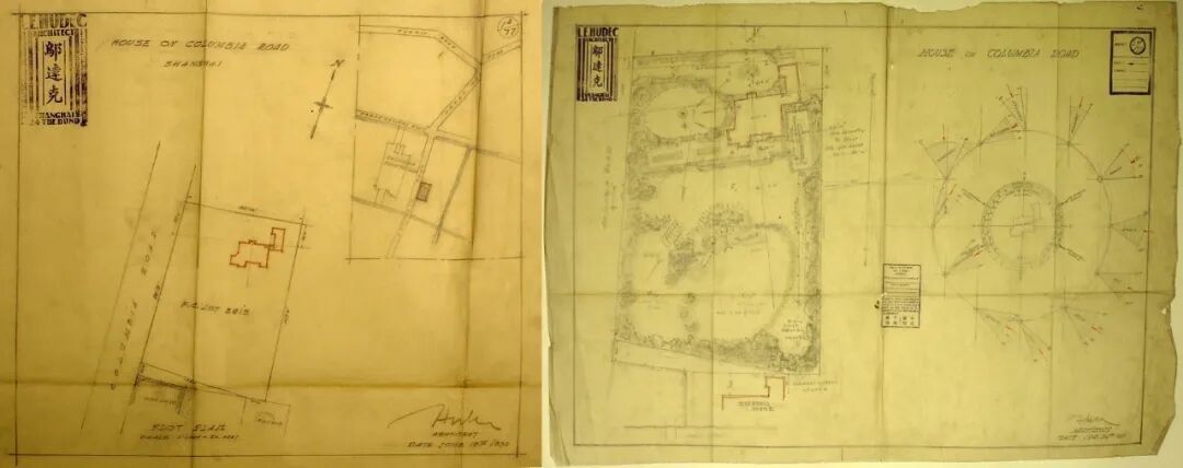左图为哥伦比亚路旧居的总平面图、右图为哥伦比亚路旧居总体规划布局图