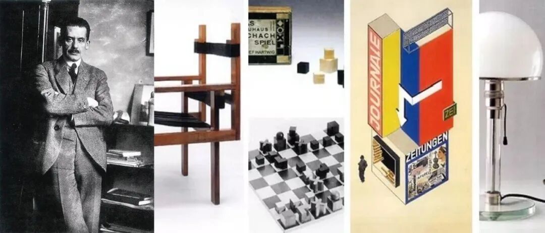 左图为学院创始人德国建筑师瓦尔特·格罗皮乌斯,右图为部分包豪斯作品