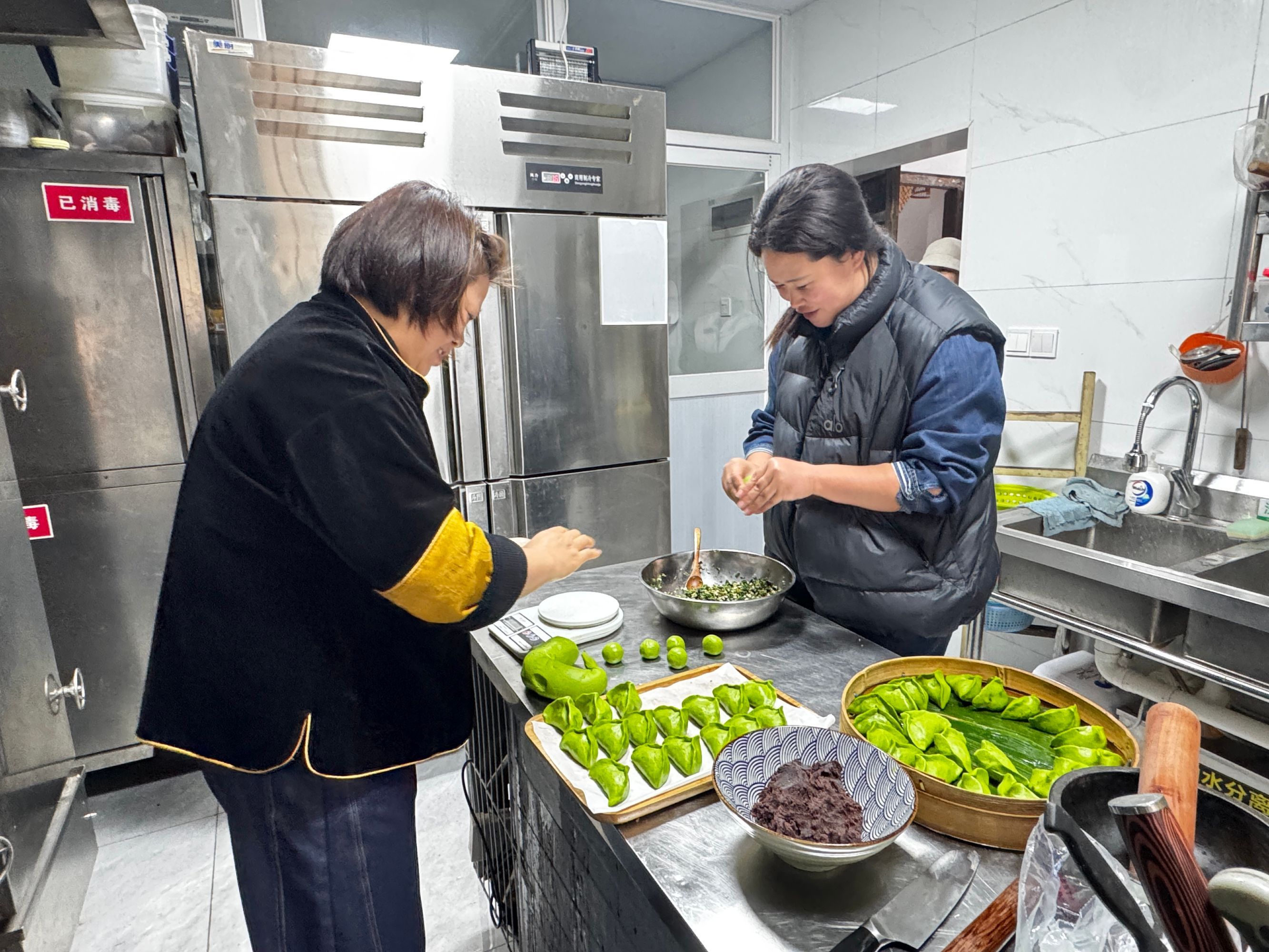 周红梅的手艺传承自当地老人,为了做好这一传统美食,她严格把关每一道制作工序,并在口味上不断探索创新。“青草汁与糯米粉需要按1:2的比例混合,面团要揉至不粘手、不裂纹。”周红梅介绍道,“我们还结合时令食材,不断尝试新的口味,得到了不少附近食客的喜爱。希望非遗文化能让更多人知晓,这门手艺也能继续传承下去。”