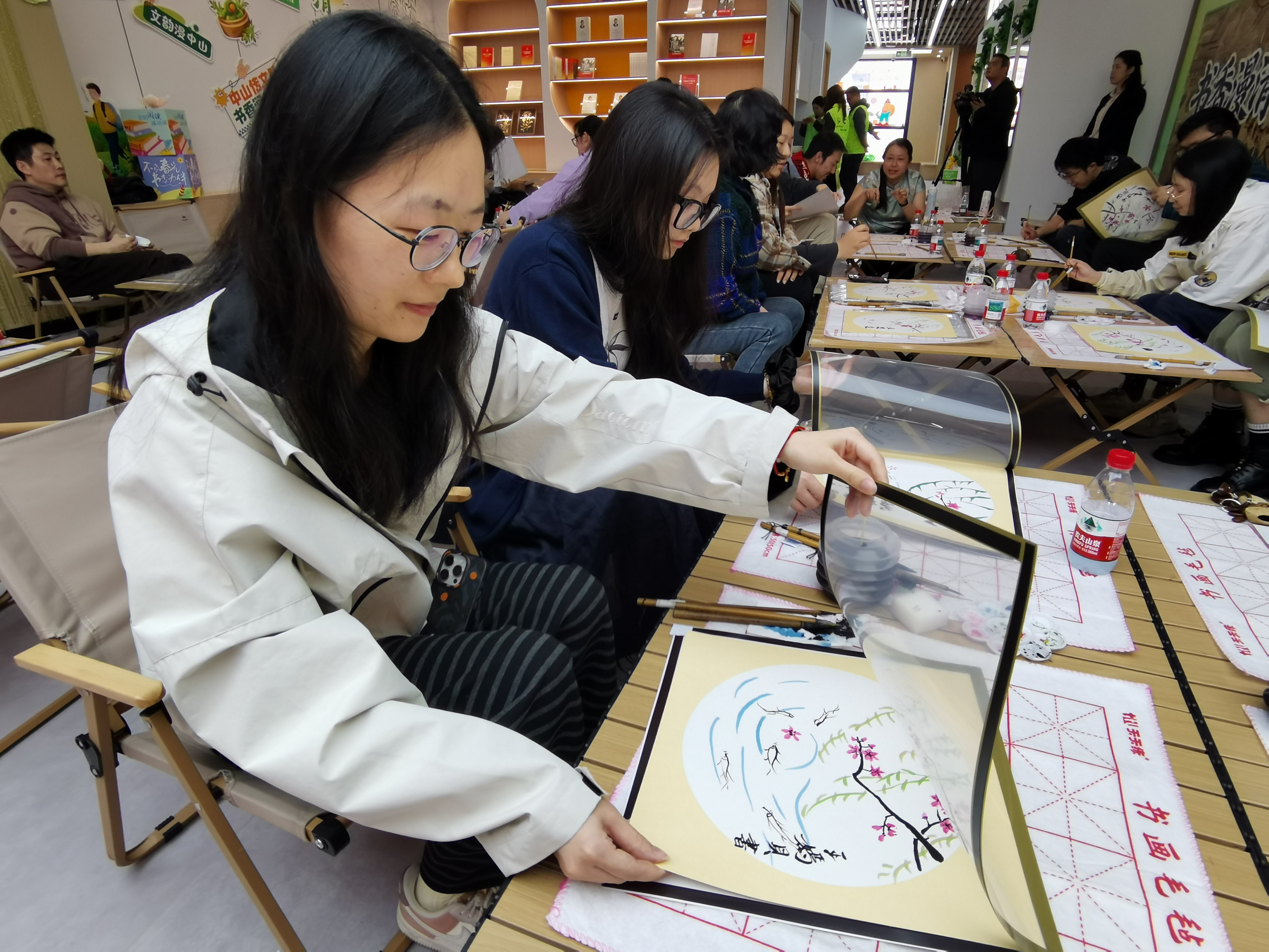 最热闹的当属“墨笔绘清明”国画体验环节,年轻人围在专业老师身边,好奇地尝试调墨、运笔。嫩绿的柳枝、红艳的花朵、嬉戏的鱼儿,笔墨丹青落笔间,描绘烂漫春日盛景,勾勒专属清明的雅致意蕴。活动尾声,软糯香甜的青团被端上桌面,年轻人们围坐在一起,在美食与闲聊中拉近了彼此的距离,也让清明的传统韵味在舌尖与心间缓缓流淌。