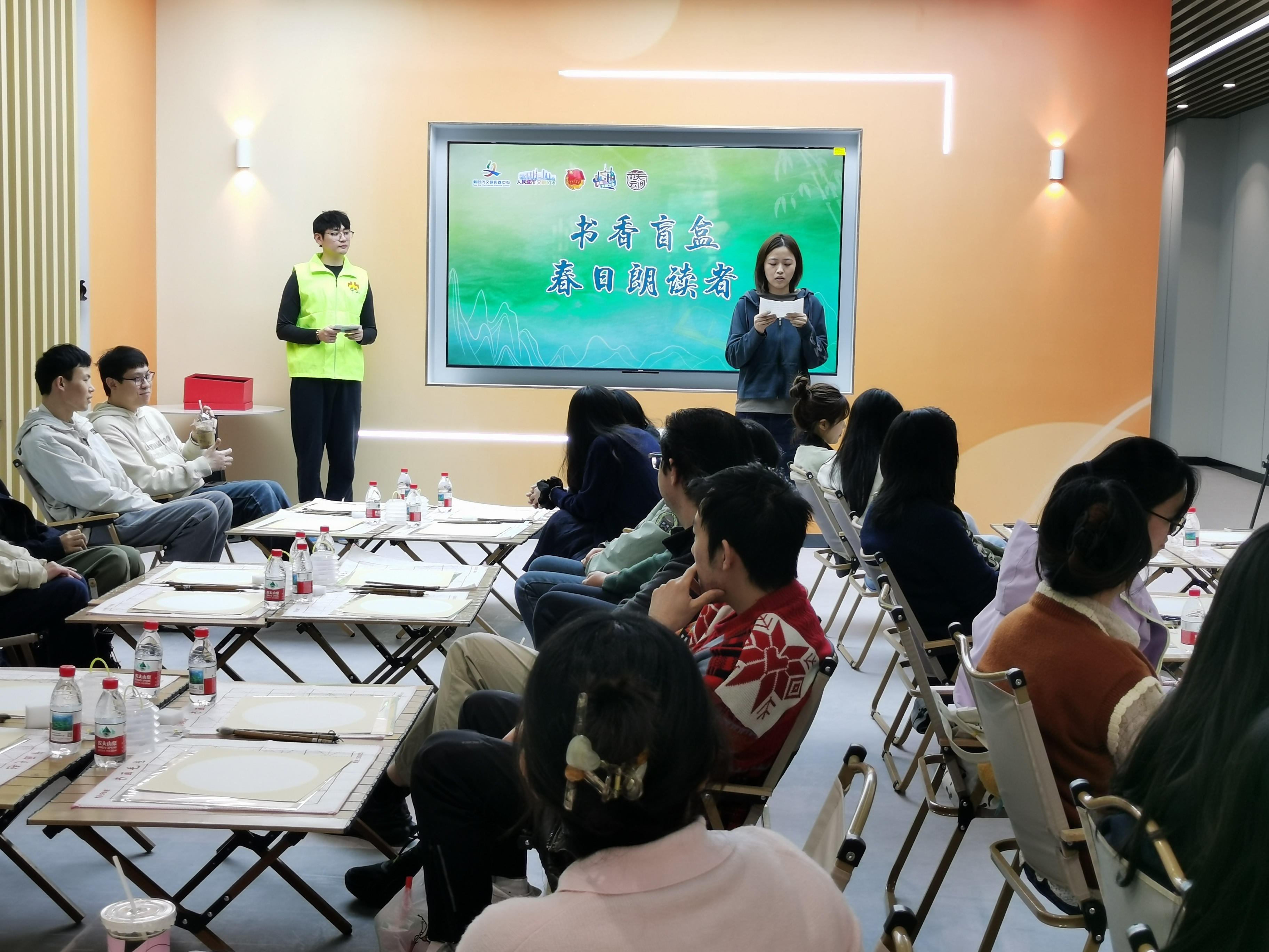 清明时节,春和景明,正是读书诵诗的好时候。“书香盲盒·春日朗读者”环节里,手持号码牌的年轻人们踊跃上台,抽取书香纸条,有的女生用温柔声线诵读春日美文,有的男生则以铿锵语调分享书籍节选或是红色经典,现场掌声不断。
