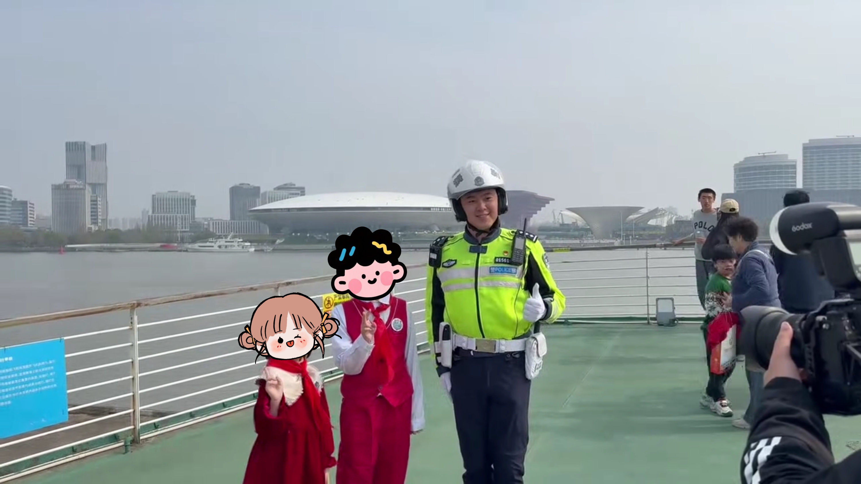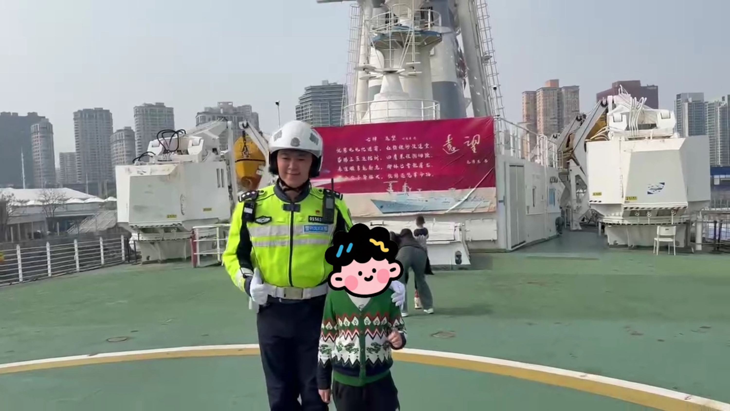 登上船舷,孩子们的眼中满是好奇。李佳梁耐心细致地为孩子们讲解船上的各种设备,从驾驶舱内精密的航海仪器到甲板上大型的测控装置,每一处都让孩子们惊叹不已。与此同时,李佳梁也不忘细心守护孩子们的安全,他时刻留意着孩子们的动向,时不时给胆小的孩子一个暖心的搀扶。看着孩子们兴奋又好奇的模样,李佳梁感慨道:“这些孩子就像星星一样,虽然有些孤独,但他们有着自己独特的光芒。我们要做的,就是用爱去守护他们,让他们在这片蓝色的星空下,快乐成长。”