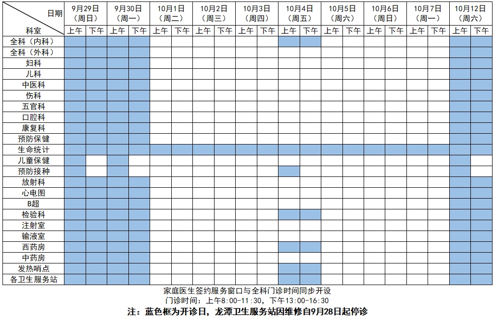 中心各科室门诊开诊情况如下: