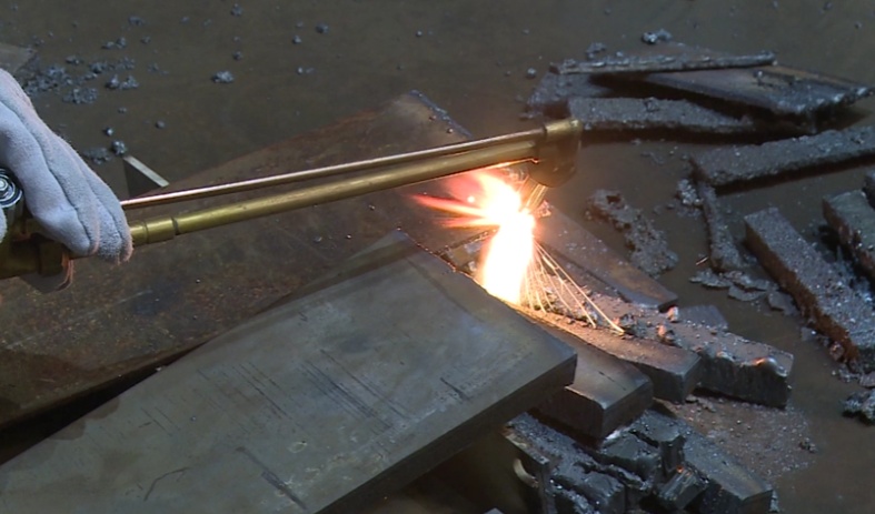 “要控制好气的大小,上面那个快风开得不够的话,就切不掉。”苗正青一边操作一边说道。马志勇对他的表现给予肯定:“割的时候他能把钢板割透,但稍微有点氧化,下面有点挂渣。以他这样的速度练下去,应该很快就能熟练掌握这把割炬。”
