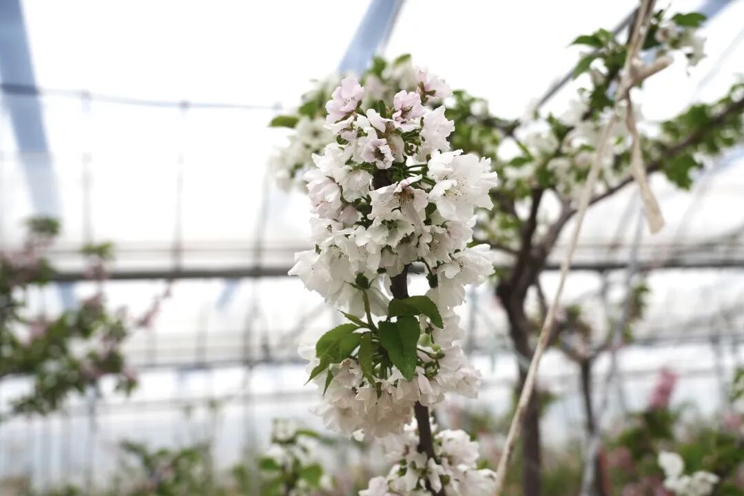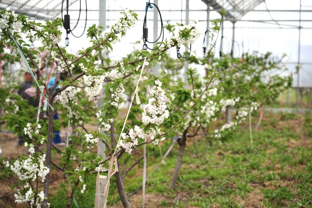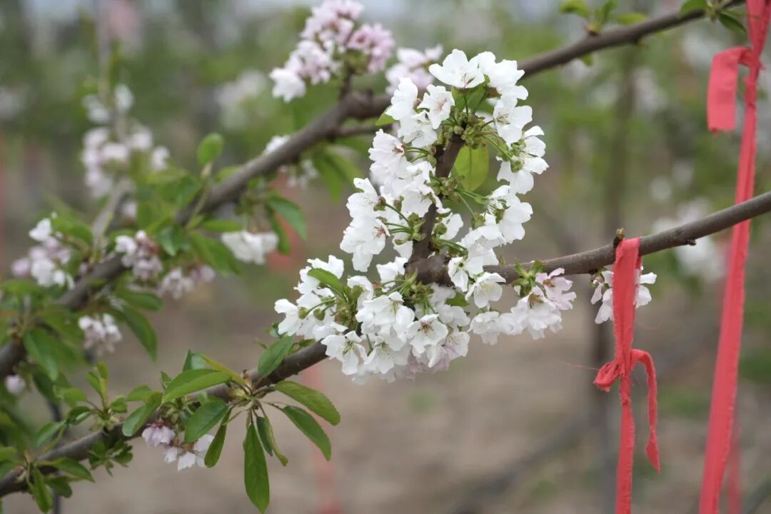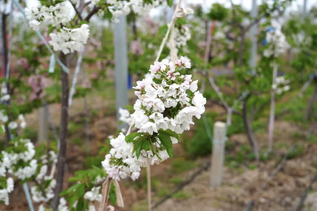 樱桃园种植面积达120亩,涵盖多个优质樱桃品种。据种植基地负责人介绍,今年花期气候条件适宜,花势整体良好,为后续坐果打下了坚实基础。
