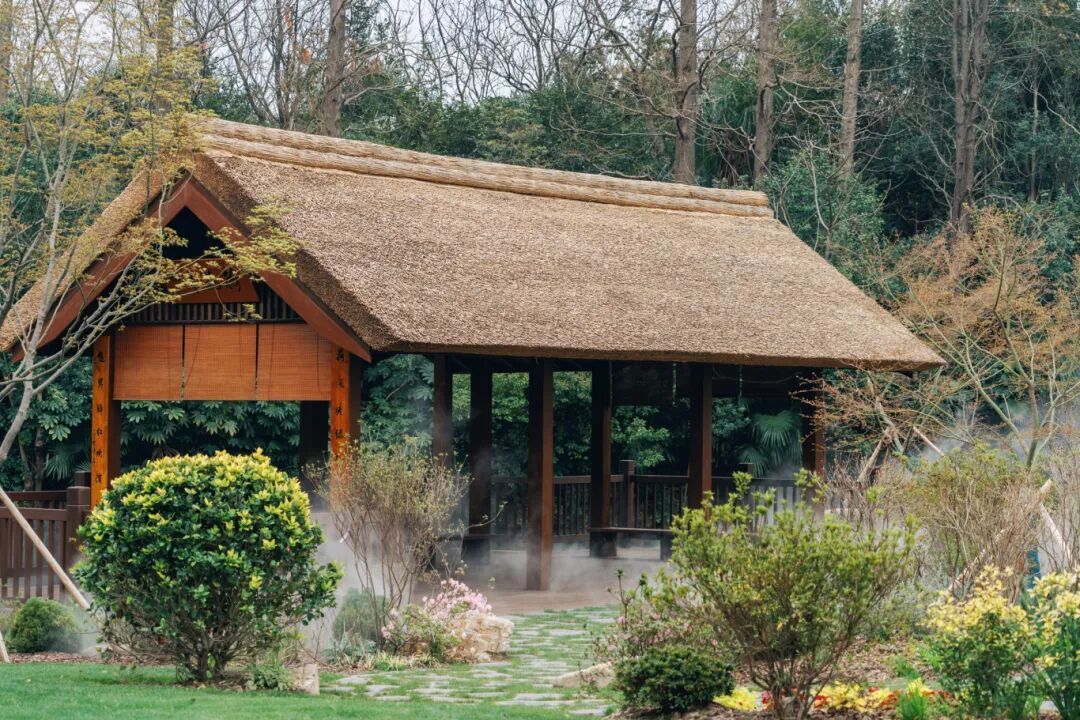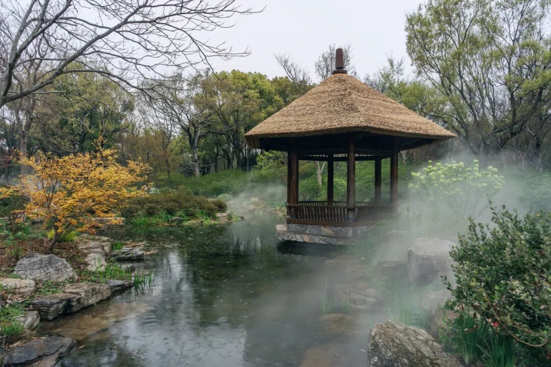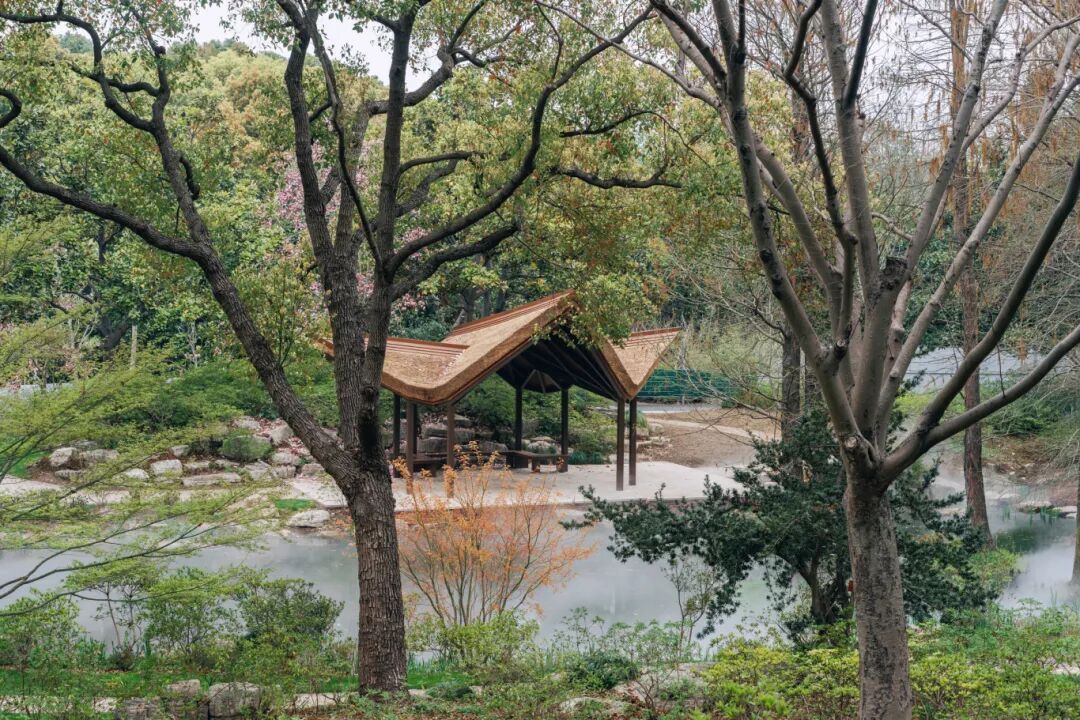 园区怡心亭、探花亭等景观节点保持原有风貌,新增荷鹃亭供游客驻足观花,道路桥梁全面翻新。