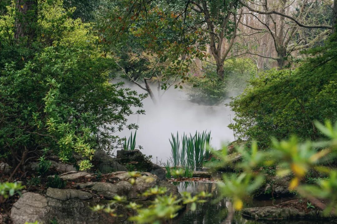 通过品种迭代、季相营造、设施修缮及雾森叠溪的景观融合,杜鹃园被打造成意境悠远的沉浸式生态空间。